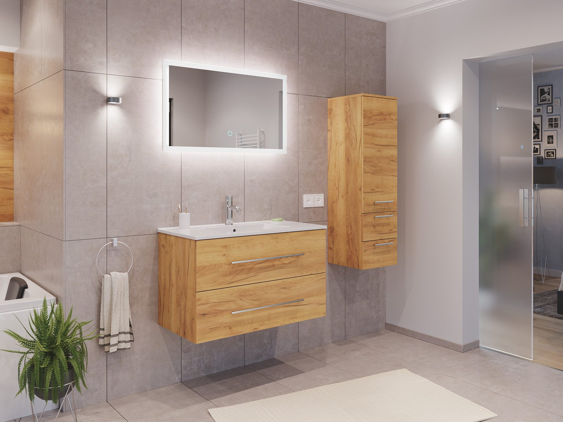 Die Ware wird zerlegt geliefert. Eine Aufbauanleitung liegt der Ware bei. Der Badunterschrank ist für die Wandmontage vorgesehen. Etwaiges Wandmontagematerial für die Aufhängung ist in der Lieferung nicht enthalten. Bitte verwenden Sie Schrauben und Dübel, die zu den Bedingungen bei Ihnen vor Ort passen. Das Waschbecken müssen Sie in der Regel nicht extra an der Wand befestigen, sondern es wird auf den Unterschrank aufgesetzt. Die Montage wird mit einem Silikonstreifen zwischen Badmöbel und Waschbecken sowie Badezimmerwand optimiert. Der Anschluss für Ab- und Zulauf erfolgt wie üblich. Wir empfehlen, den Wasseranschluss von einer Fachfirma durchführen zu lassen. Schrank/Spiegelschrank ist/sind für die Wandmontage gedacht. Der Türanschlag ist rechts oder links möglich. Der Anschluss ggf. für Strom erfolgt wie üblich. Wir empfehlen, den Wasser- sowie etwaigen Elektro-Anschluss von Fachfirmen durchführen zu lassen.