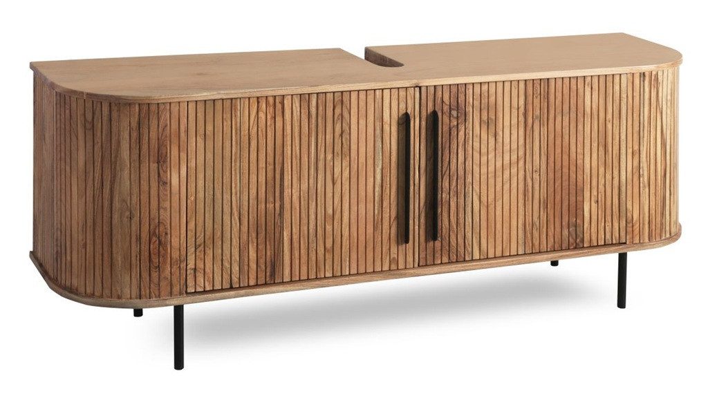 Die Kombination aus massiver Akazie und dem schwarzen, pulverbeschichteten Metallgestell und den Griffen verleiht dem Schrank eine moderne und zugleich zeitlose Ausstrahlung. Die hochwertigen Materialien sind robust und langlebig, sodass du lange Freude an diesem Möbelstück haben wirst.