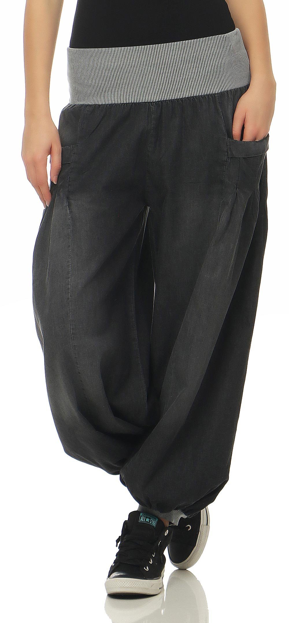 Besonderheiten: Diese Malito Haremshose ist die perfekte Wahl für jeden Tag. Die Hose hat eine lockere Passform, elastische Rippbündchen an Bund und Beinabschluss und zwei Eingriffstaschen. Sie ist sehr luftig und angenehm zu tragen, sodass Sie sich den ganzen Tag über wohlfühlen können. Der lockere Schnitt sorgt für einen coolen Look und einen perfekten Sitz an der Taille. Diese Hose ist ein Muss für Ihren Kleiderschrank!