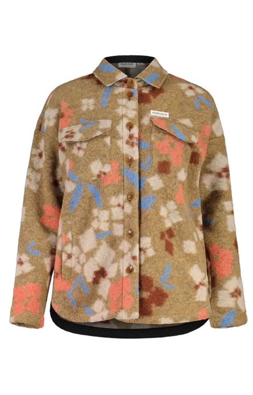 Das warme Overshirt mit aus querelastischem, atmungsaktivem Wool Fleece Jacquard ist der ideale Всеskönner für die kalte Jahreszeit. Die Kombination von Wolle und Polyester hat einen natürlichen Griff und trägt sich drinnen und draußen sehr gut. Blickfang sind die im Material eingearbeiteten floralen Designs.