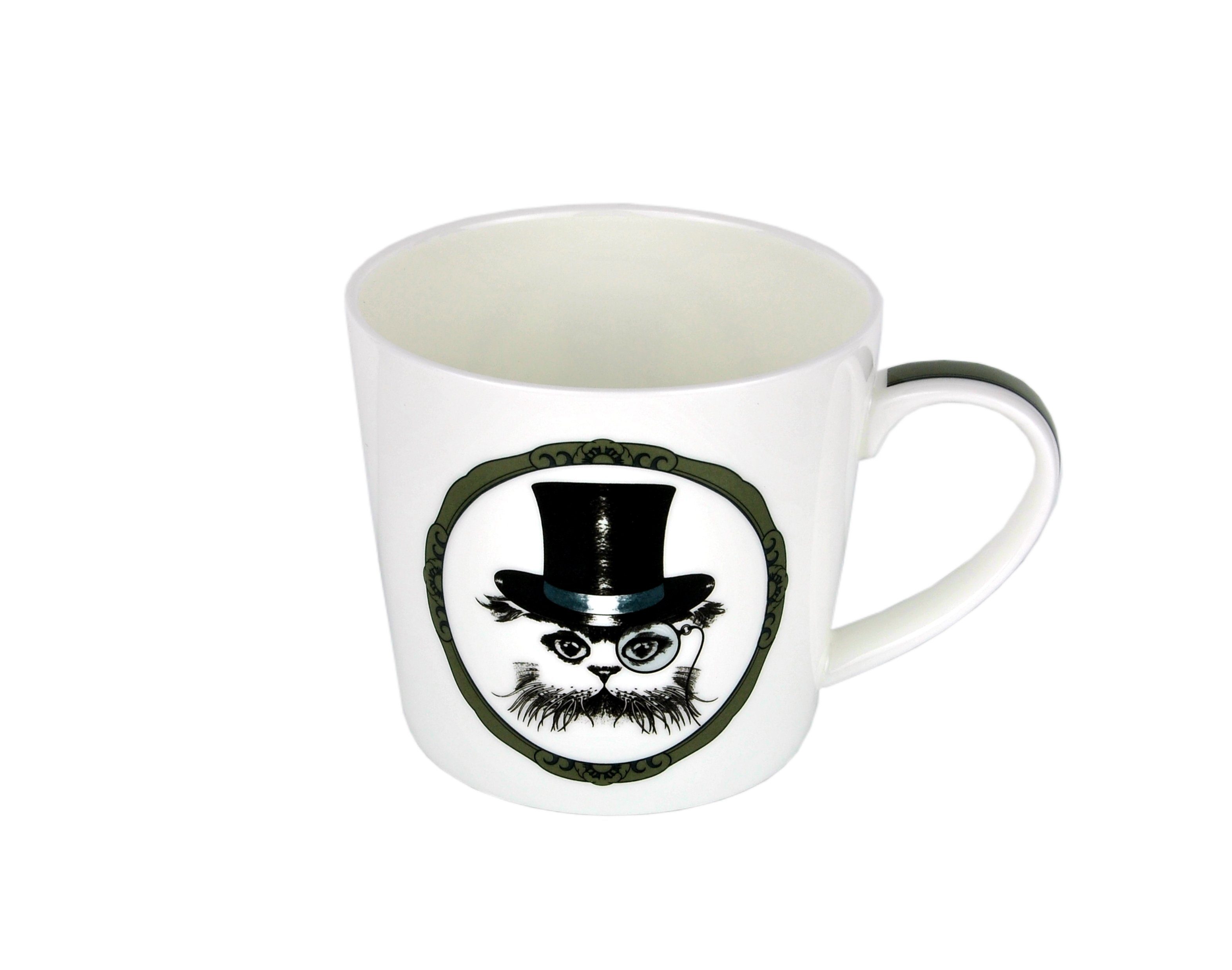 4er Set Becher 0,45 L aus Brillantporzellan Katze mit Zylinder – Jameson&Tailor