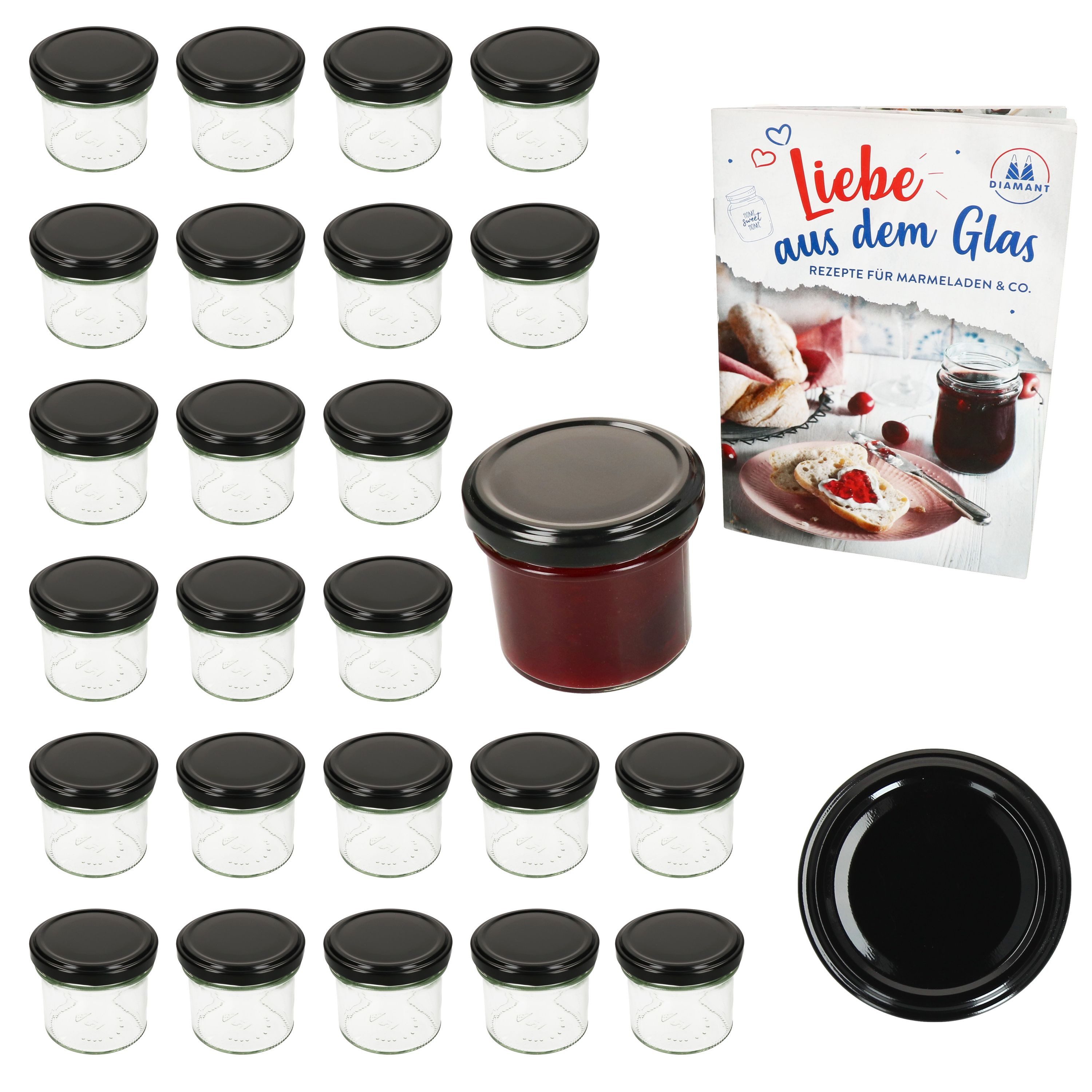 Mit diesem 25er Set 125 ml Sturzgläser inklusive Twist-Off-Deckel in Schwarz und dem Diamant-Zucker Rezeptheft sind Sie bestens ausgestattet, um die unterschiedlichsten Leckereien zu verarbeiten.