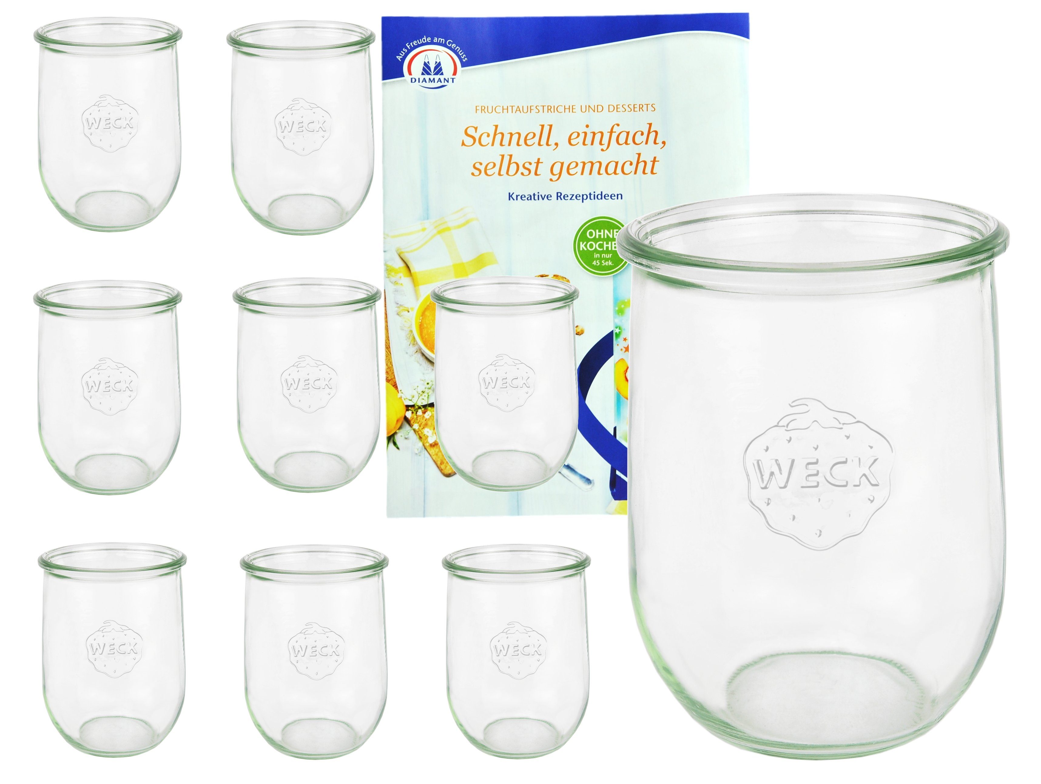 9er Set Original WECK Tulpenglas, 1062 ml + GRATIS Rezeptheft, Vase, Karaffe, Einmachglas, Gurkenglas, Einkochen + Konservieren, transparentes Glasbehältnis
