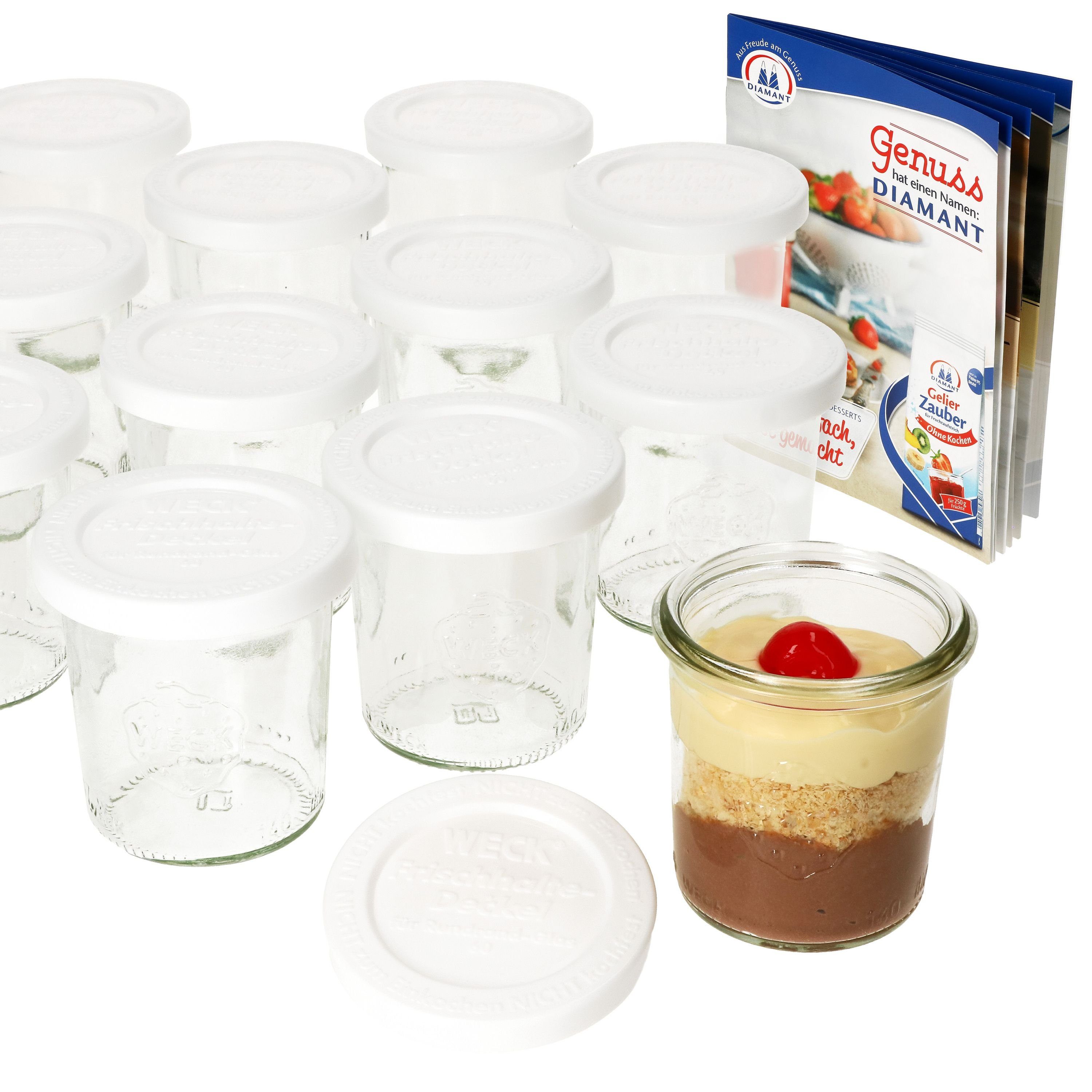 Die Mini Weck Behälter sind zudem als Dessertgläser geeignet. Für besondere Anlässe können Sie Ihre Desserts, Backwaren oder sogar die Vorspeisen auf eine originelle Art servieren.