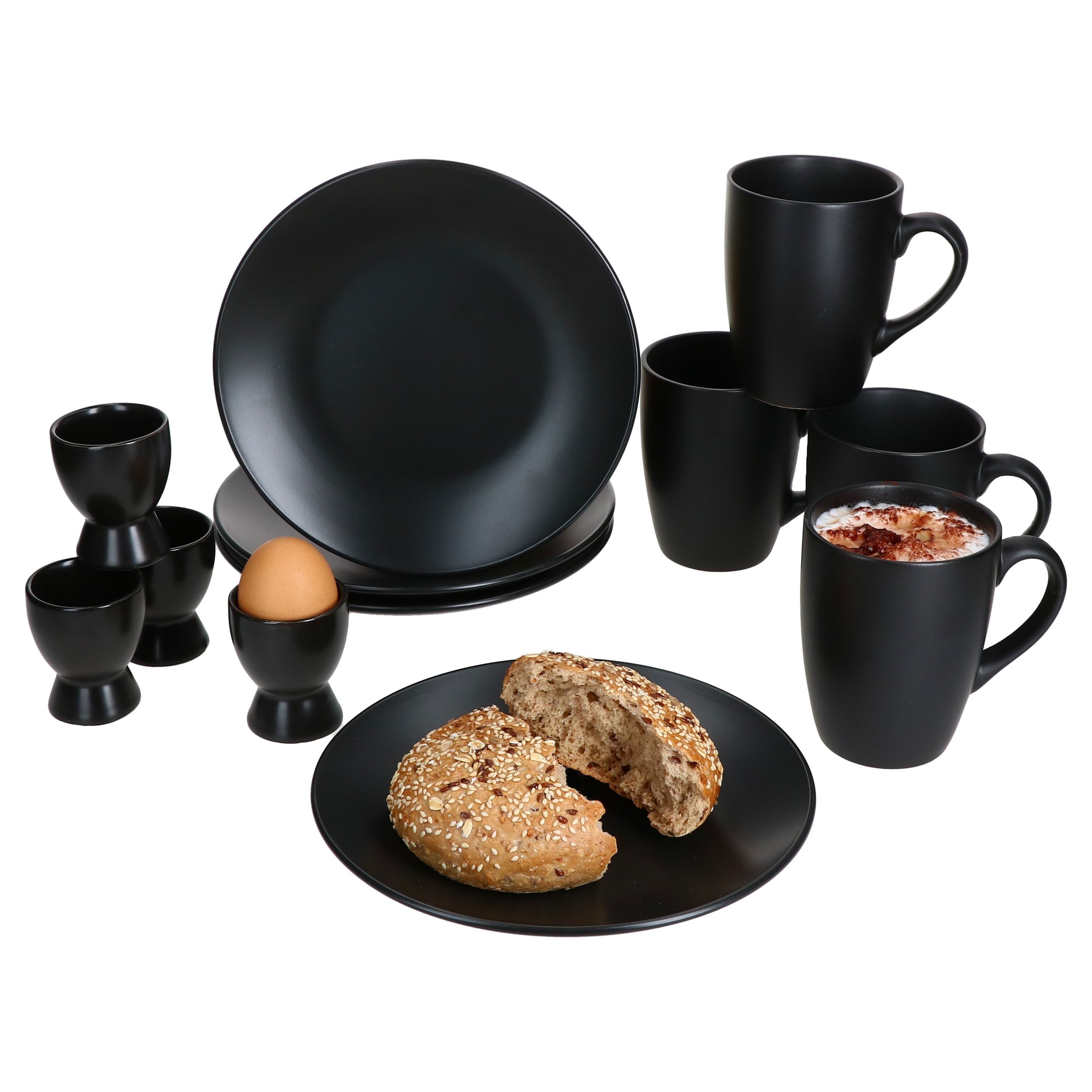 Genießen Sie dieses moderne schwarze 12-teilige Frühstücksset Nero und präsentieren Ihr Frühstück auf ansprechende und zugleich anmutige Weise.