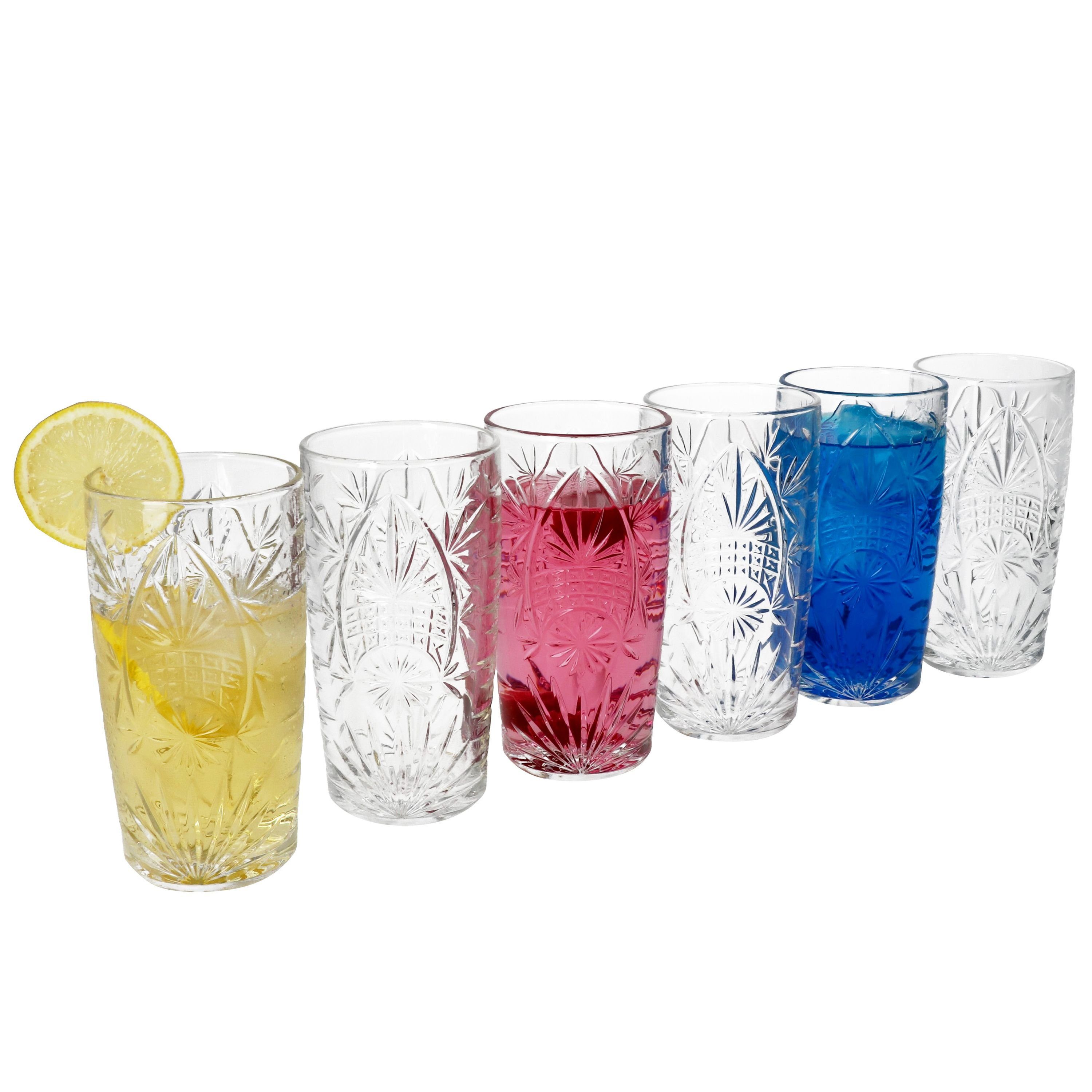 Glas 6x Starla Longdrink-Gläser 300ml Cocktailglas transparent Relief