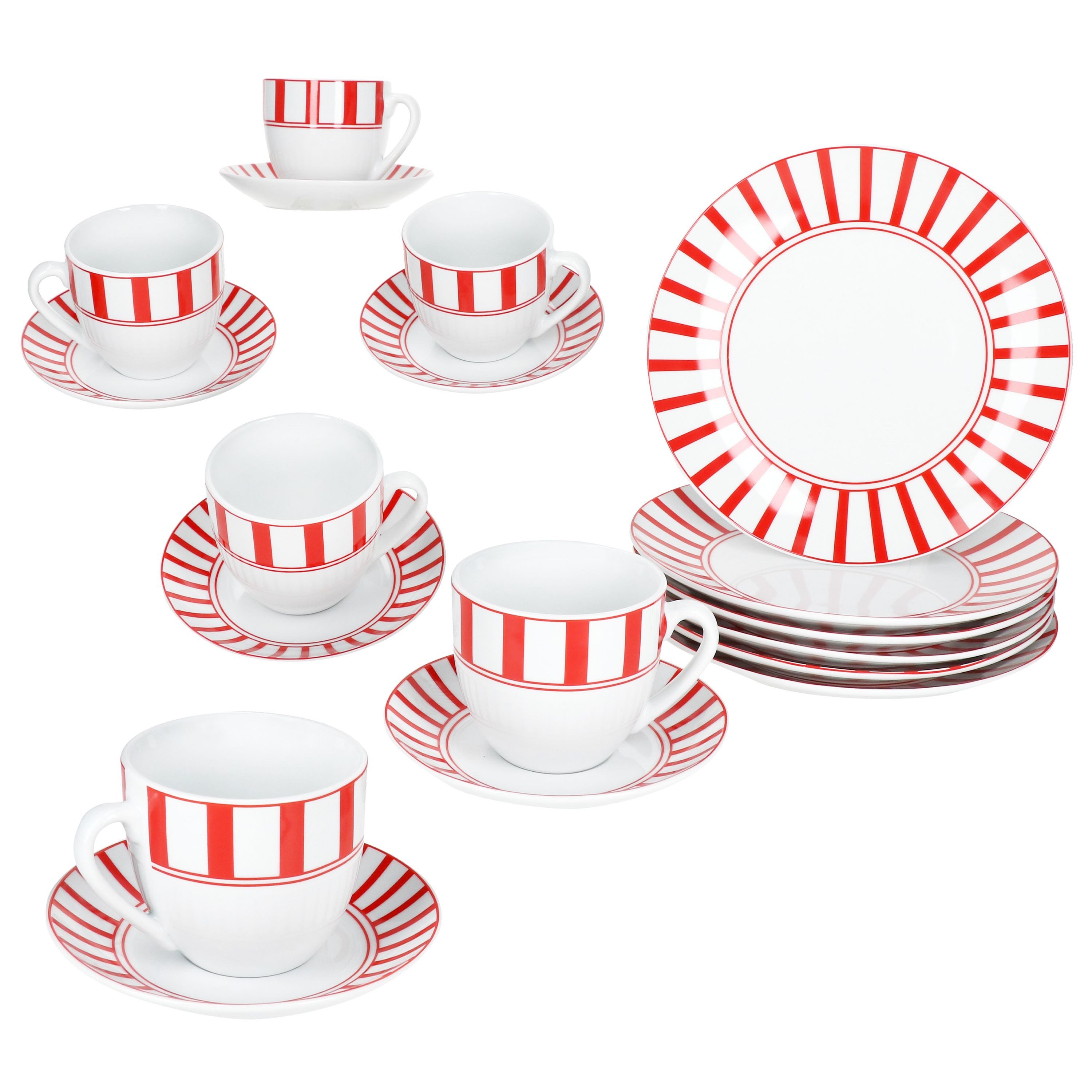 Genießen Sie das fröhliche und farbenfrohe 18-teilige Kaffeeservice Split rot aus Porzellan und hauchen Ihrem Tisch mit diesem aufeinander abgestimmten Set Leben ein.