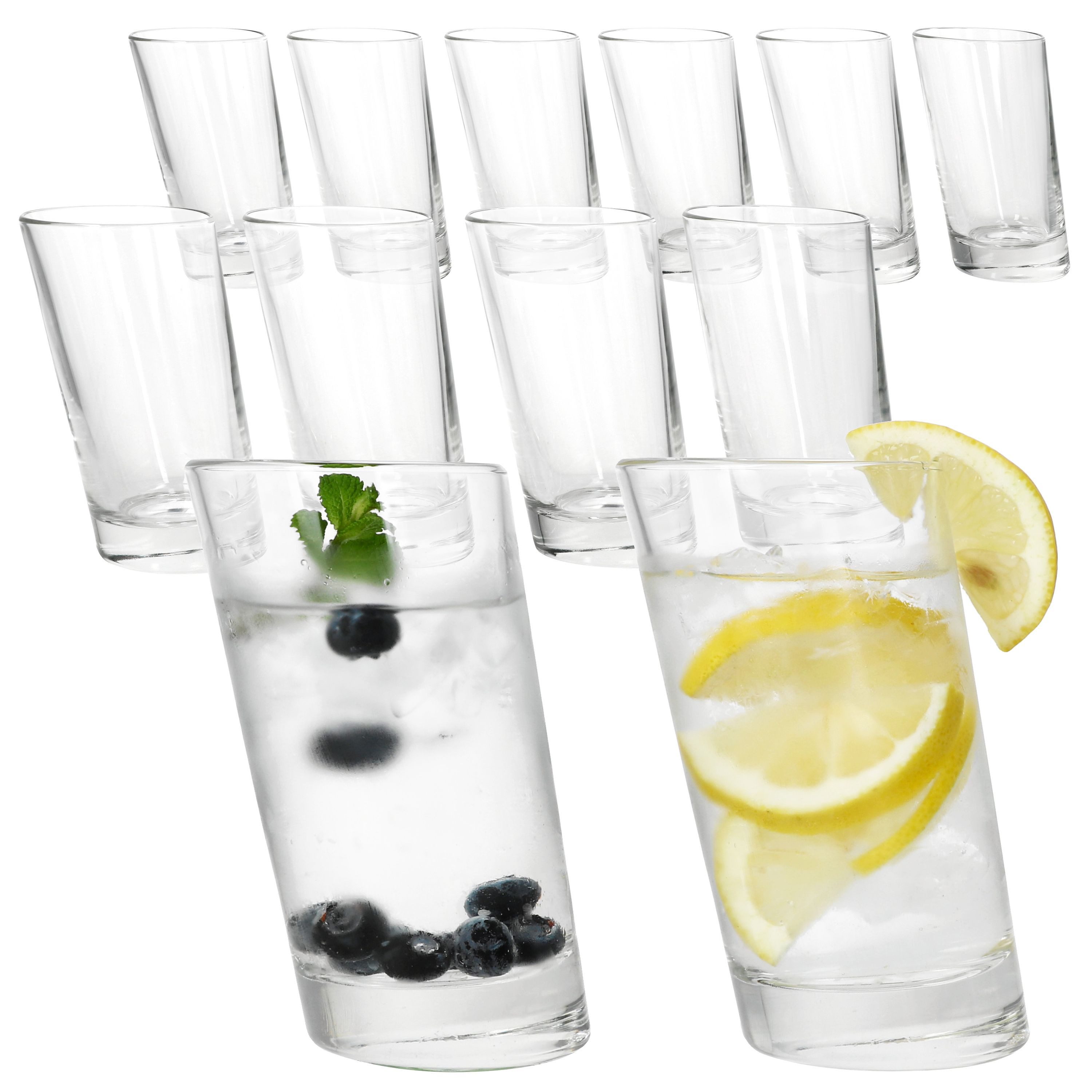 Servieren Sie in den eleganten hohen Gläsern klassisch Longdrinks, Cocktails, Wasser mit Twist, Säfte, Eiskaffee oder Smoothies zum Essen oder abends in einer gemütlichen Runde. Die schlanken Gläser können alternativ gern auch für Schicht-Dessert oder -Salat verwendet werden.