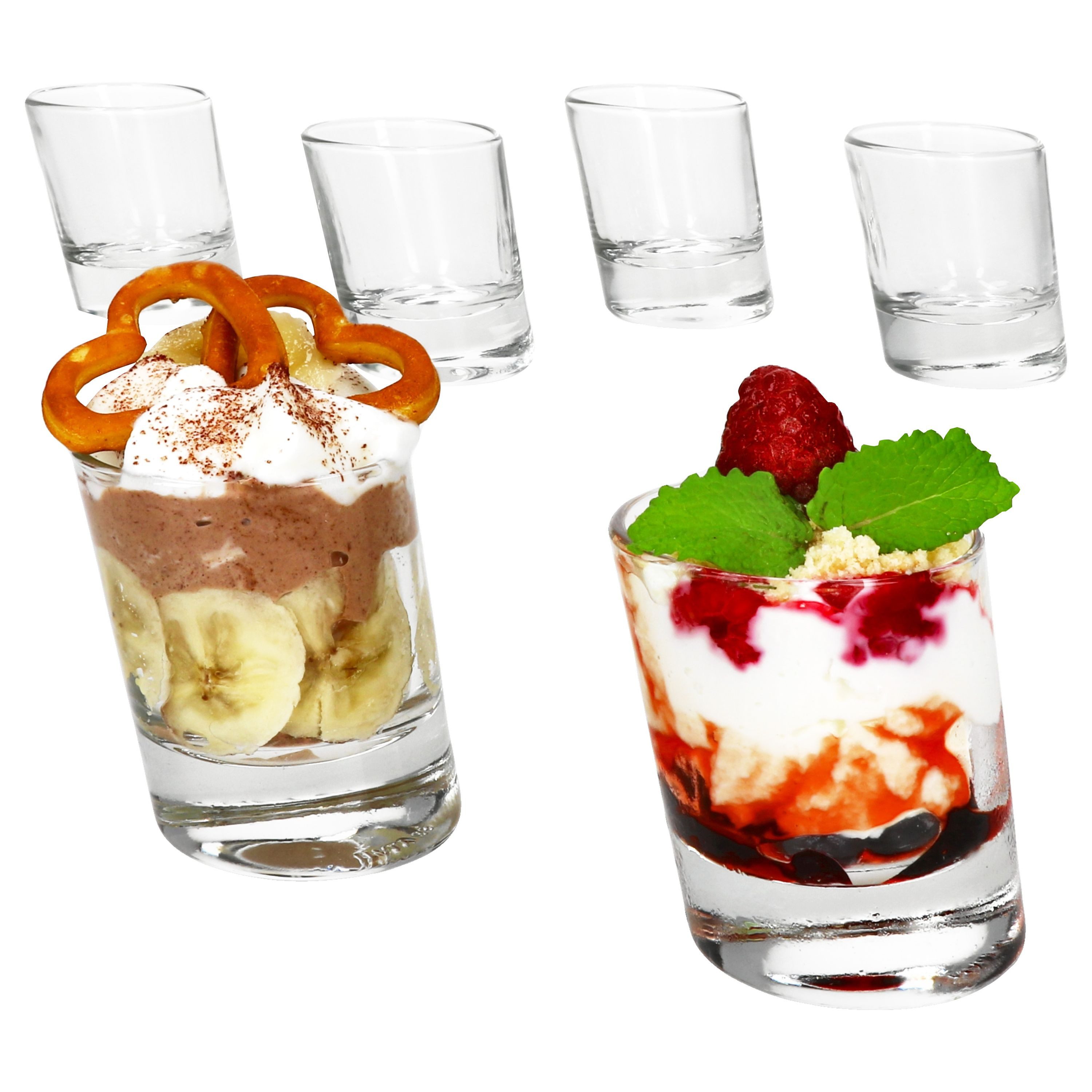 Servieren Sie in den eleganten Shot Gläsern klassisch Wodka, Tequila, Schnaps oder Likör nach dem Essen oder abends in einer gemütlichen Runde. Die kleinen Gläschen können alternativ gern auch für Aperitif-Häppchen, für Amuse Bouche oder als Dessert-Gläschen genutzt werden.