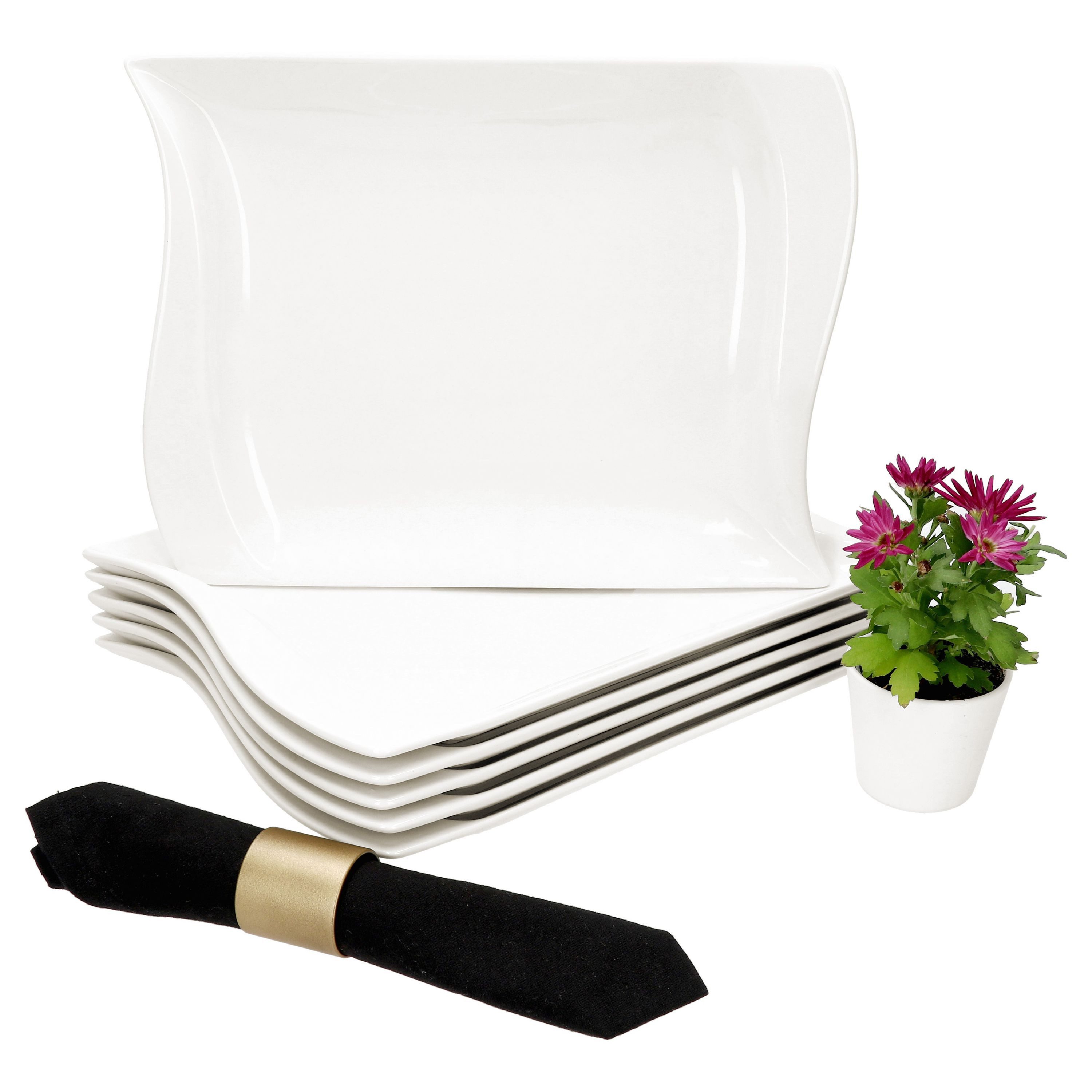 Hergestellt aus Porzellan, glänzen die großen Platten mit Robustheit und Langlebigkeit und bereiten Ihnen immer Freude beim Servieren. Noch dazu sind sie spülmaschinengeeignet und mikrowellengeeignet.