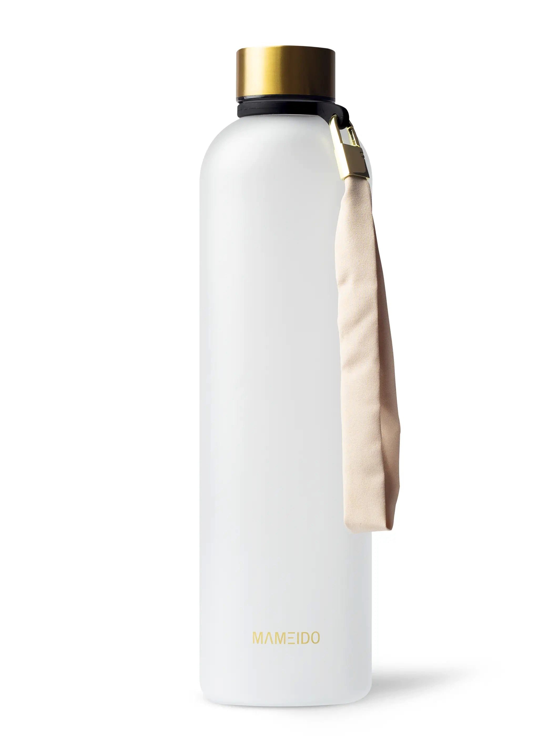 Die MAMEIDO Trinkflasche vereint Funktionalität, Stil und Leichtigkeit für deinen aktiven Alltag. Mit einem Fassungsvermögen von 1 Liter ist sie ideal, um ausreichend Wasser – auch mit Kohlensäure – unterwegs, im Büro oder beim Sport dabeizuhaben. Die klare Flasche mit edlen goldfarbenen Details setzt stilvolle Akzente und passt perfekt in jede Tasche. Gefertigt aus ultraleichtem, BPA-freiem Tritan ist sie robust, geschmacksneutral und angenehm in der Handhabung. Der dichte Drehverschluss sorgt für zuverlässige Auslaufsicherheit – auch bei kohlensäurehaltigen Getränken. Die dezente Zeitmarkierung auf der Flasche hilft dir, deine Trinkmenge im Blick zu behalten und motiviert dich, regelmäßig zu trinken. Die MAMEIDO Trinkflasche ist nicht nur praktisch, sondern auch ein Statement für bewusstes, ästhetisches Trinken im Alltag. Ob beim Sport, im Studium oder unterwegs – sie begleitet dich zuverlässig und stilvoll durch den Tag.