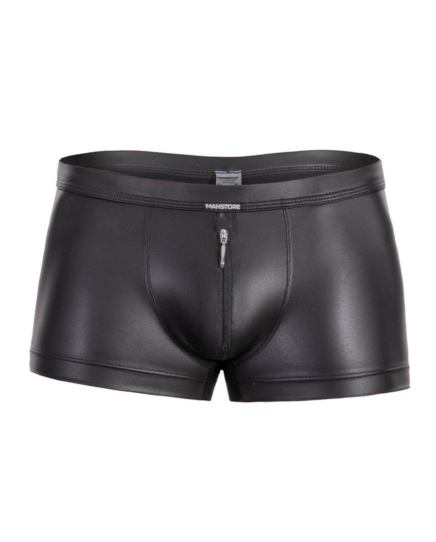MANSTORE - Munition auf Vorrat. Niemand muss auf besondere Momente warten, um sich ein Manstore Upgrade zu leisten. Denn jede Situation kann zum Abenteuer und Pulverfass ausarten. Männer mit den richtigen Antennen sind deshalb immer präpariert und allzeit bereit. Sie haben keine Wäscheschublade, sie nennen es Waffenschrank. Und die Manstore Basic Favorites sind hier die unentbehrliche Munition. Zuspitzen, dramatisieren, provozieren - Mit dieser Vorgabe geht Manstore an den Start. Der neue Auftritt zeigt ein cleanes, laborartig synthetisches Ambiente. Dort spielt sich das exhibitionistische und provokant exzessive Schauspiel ab. Manstore fokussiert den Mann, der keine Hemmung kennt und sich in Szene setzt. Er ist der Alligator, der Skorpion, der schwarze Schwan, der den Mainstream attackiert. Der Fetisch ist Kult, Begierde und Designobjekt zugleich. Perfekt erschaffen für das lustvolle Vorspiel des Jägers im Dschungelcamp der Erotik. MANSTORE M510 - Reizvoll verführerisch präsentiert sich die neue Serie in betont maskuliner Linie und knapper Schnittform. Im innovativen Material-Mix zeigt sich die fein glänzende Oberfläche mit erotischem Touch und garantiert den gewünscht reizvollen Look. Unsere Empfehlung fürs persönliche Wäsche-Меню: Manstore M510 Zipped Pants. Sie erhalten dieses Modell in Black von S (4) bis 2XL (8). MANSTORE - Designer-Qualität aus Deutschland.