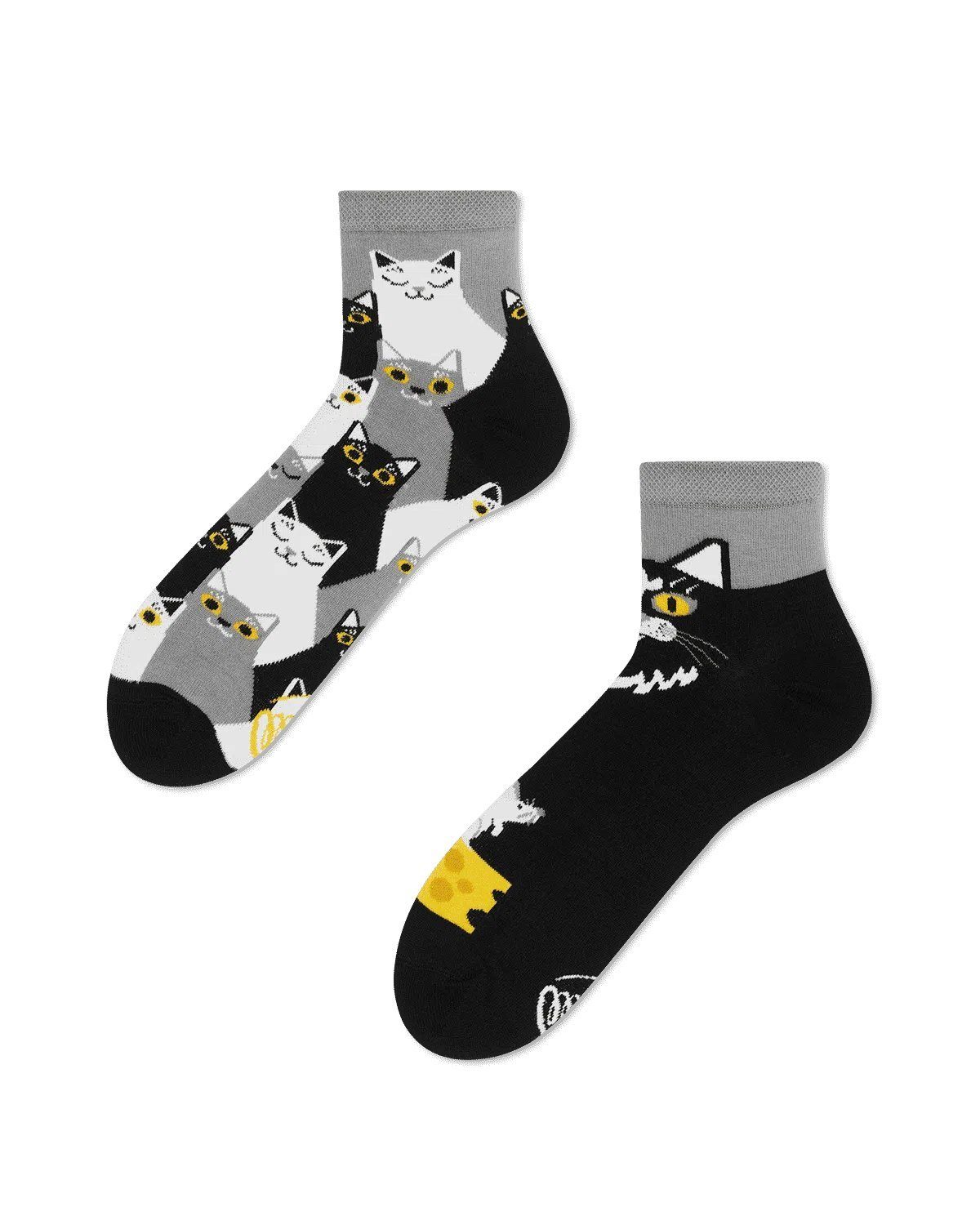 Many Mornings Quarters Black Cat Haustier Quartersocken Na, was tapst denn da elegant auf schwarzen Pfoten umher? Der durchdringende Blick der gelben Augen und das wohlwollende Schnurren hat sie verraten - miau! Schlüpfe in unsere schwarze Katze und trage das Glück durch Kinderzimmer und Alltag. typisch für Many Mornings, immer ein dismatching Paar die Socken gehören vom Thema her zusammen, sind aber für den rechten und linken Fuß verschieden Pflegehinweis: Maschinenwäsche Materialzusammensetzung: 80% Baumwolle, 15% Polyamid, 3% Elastan, 2% Sonstige Fasern