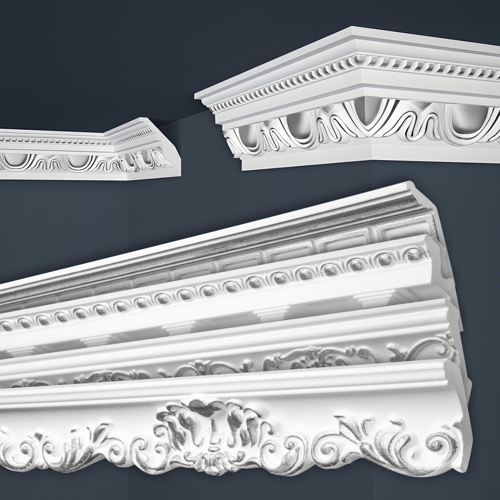 Unsere dekorativen Zierleisten mit gemusterter Oberfläche, ob in schlichtem Weiß oder in strahlendem Gold-, Silberfarbe, besprüht, bieten den perfekten Abschluss für Ihre Wandflächen. Sie sind vielseitig einsetzbar, super leicht und einfach anzubringen. Die formfesten Stuckleisten mit prachtvollen Verzierungen im klassischen Stil, zaubern mit Sicherheit einen WOW-Effekt in Ihre Räumlichkeiten und ermöglichen eine individuelle, luxuriöse Wandgestaltung. Unsaubere Tapetenübergänge, sowie Unebenheiten werden geschickt überdeckt und schaffen eine gepflegte und schöne Wohnatmosphäre. Der harmonische Übergang von Wand zur Decke ist aber nicht die einzige Verwendungsmöglichkeit. Unsere effektvollen Zierleisten bieten zahlreiche Gestaltungsmöglichkeiten, wie beispielsweise stillvolle Bild-, Wand- und Spiegelumrandungen.