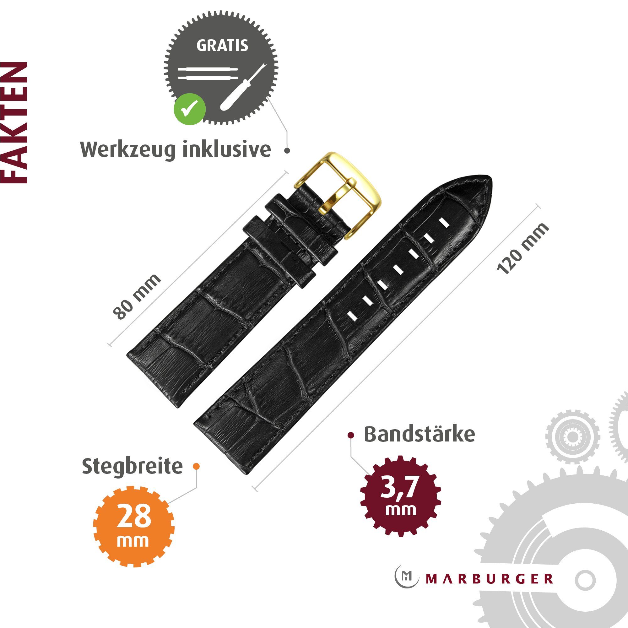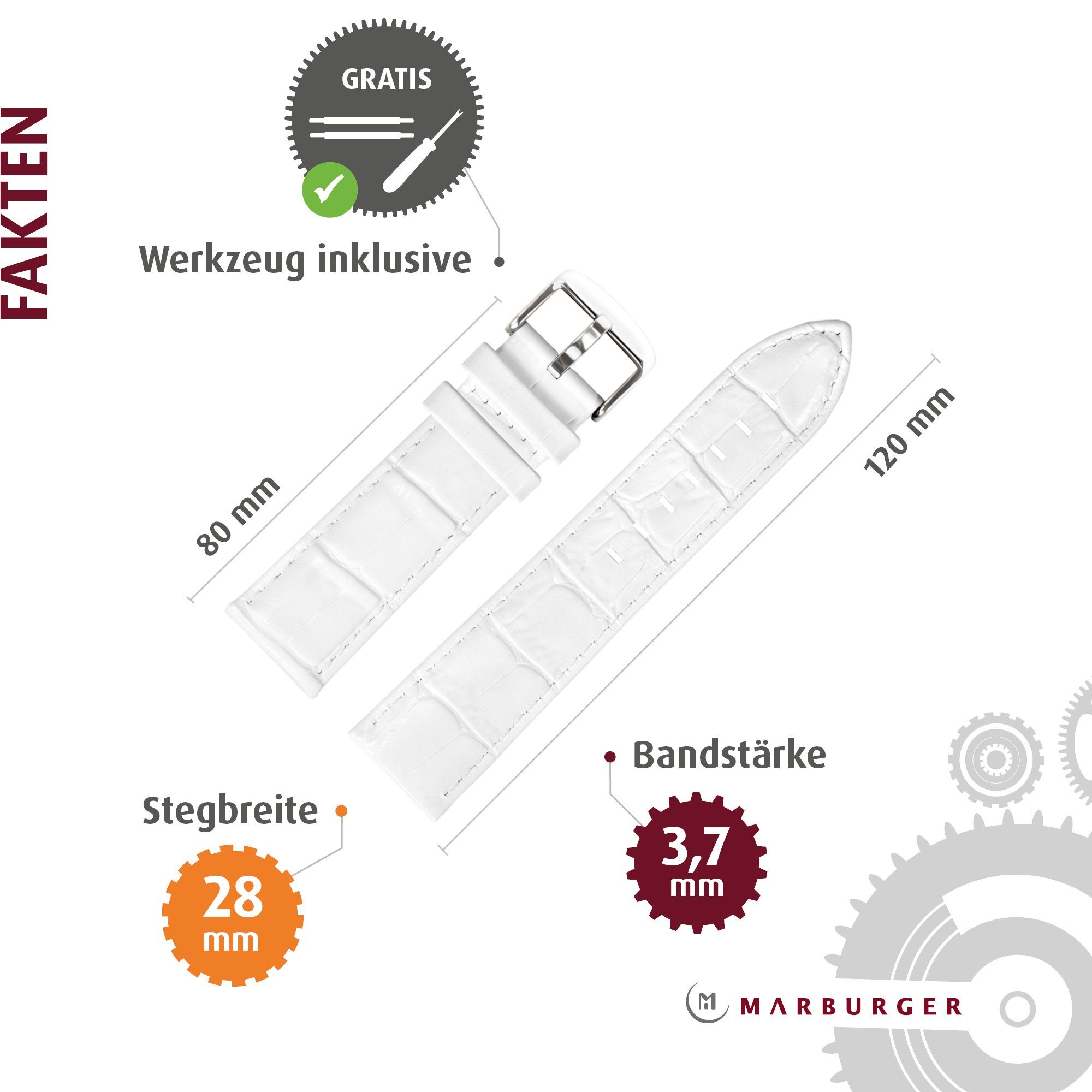 ABMESSUNGEN - Uhrband aus RINDSLEDER passend für Uhren mit einer Anstoßbreite 28 mm - Bandverlauf verjüngend 28mm auf 24mm
