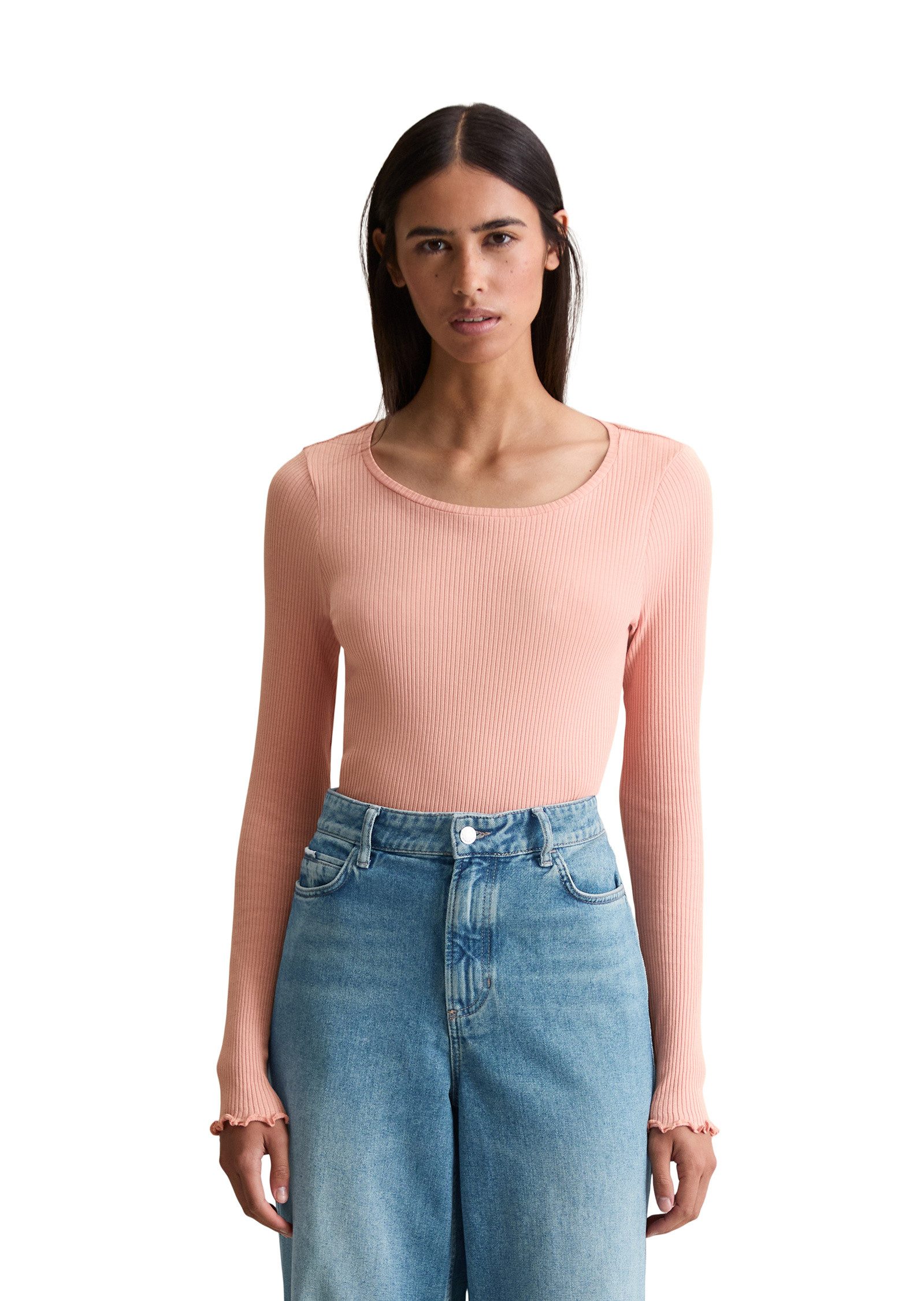 Das Langarmshirt von Marc O'Polo DENIM macht alles möglich — ob dezent, cool oder peppig. Die langen Ärmel enden in einem gewellten Abschluss. Dieses Shirt hat einen Rundhalsausschnitt und ist normal sowie schmal geschnitten, sodass es deinen Oberkörper schön zur Geltung bringt.
