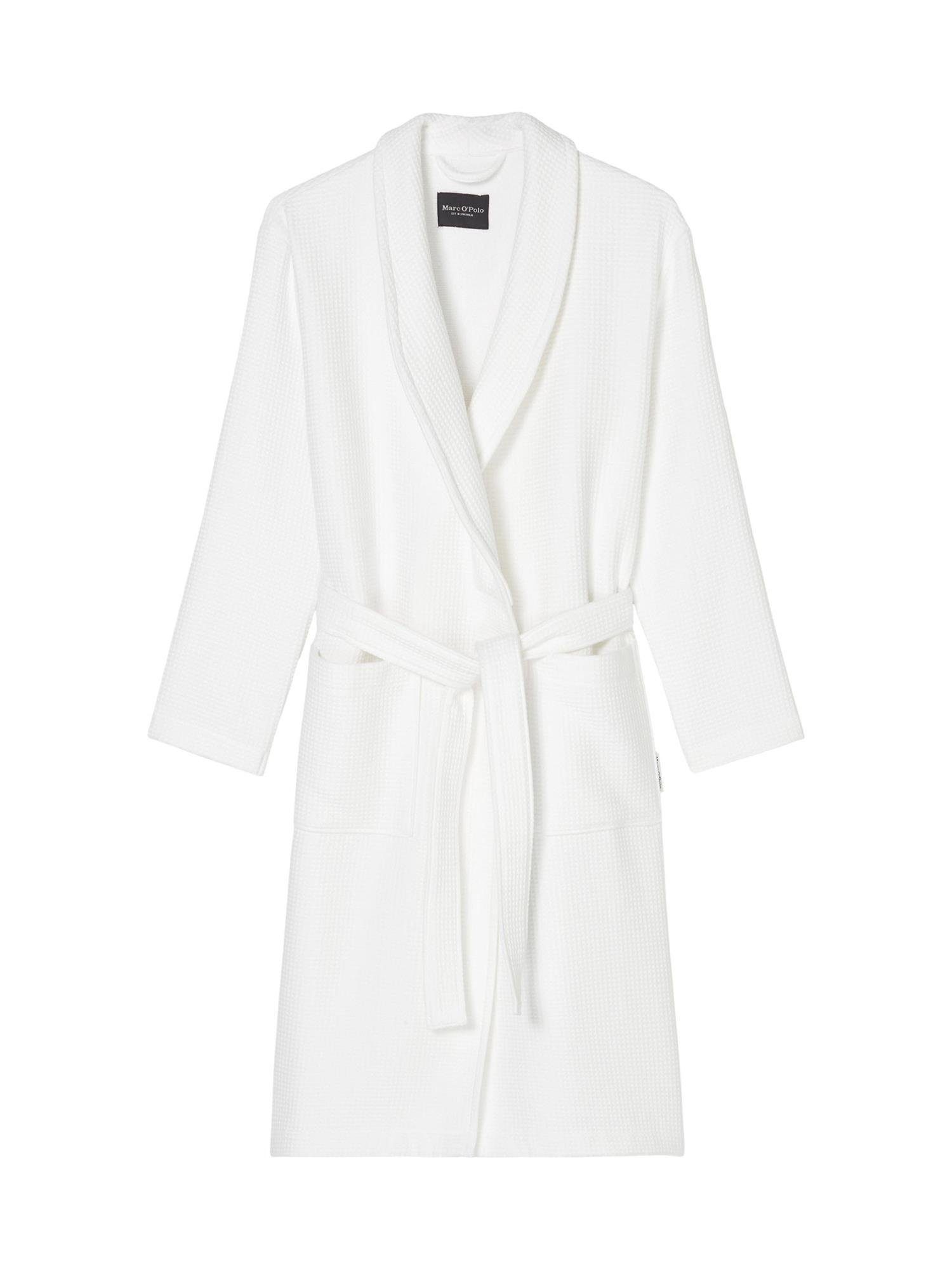 Hochwertiger Bademantel aus Bio-Baumwolle mit modernem Waffelpiqué auf der Außenseite und warmem, weichem Frottee auf der Innenseite.