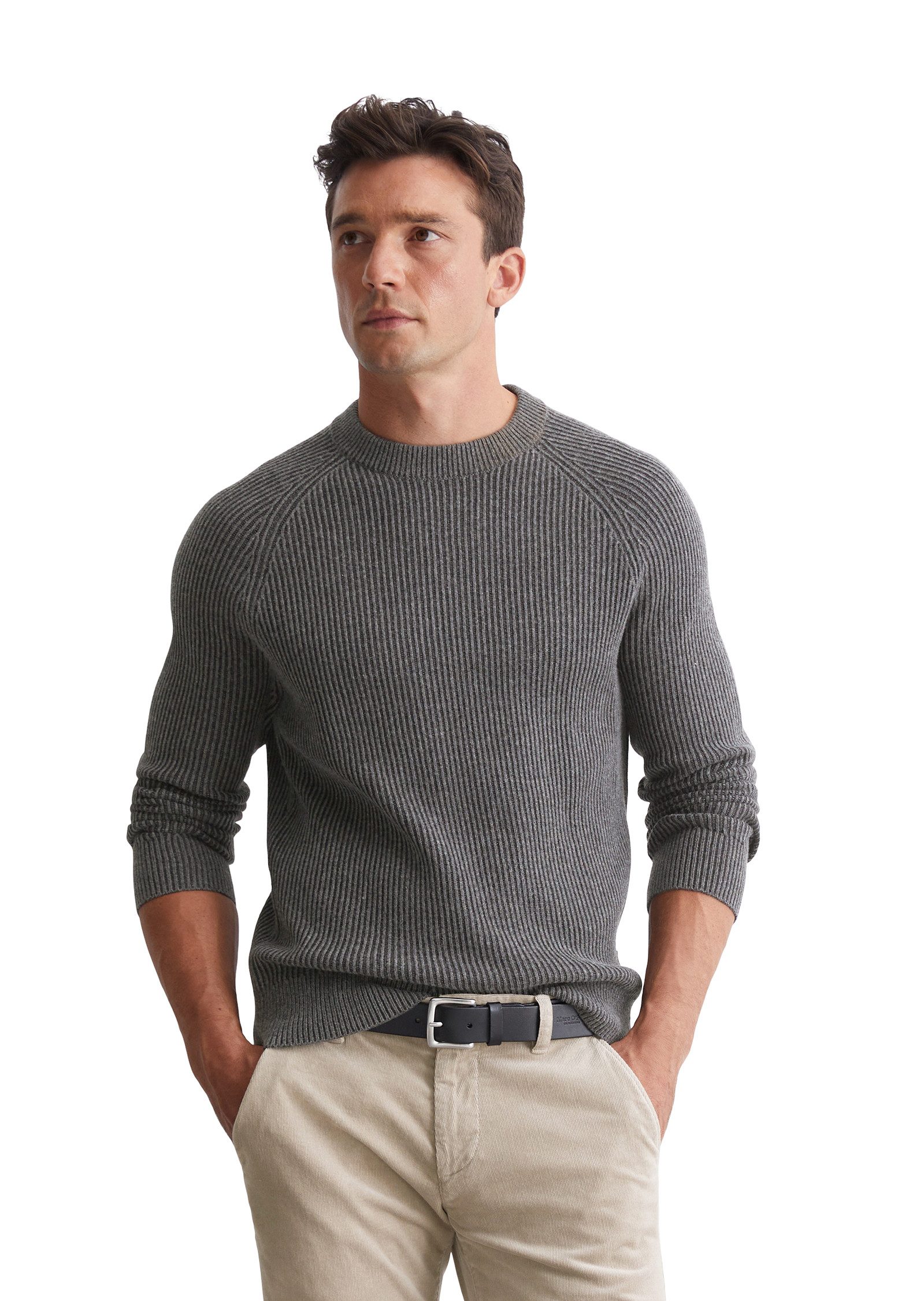 Der Rippstrickstoff aus Wollmischung überzeugt mit hoher Dehnbarkeit und ist daher sehr bequem. Um das Material zu schonen, kann der Pullover im Liegen auf einem Wäscheständer getrocknet werden.