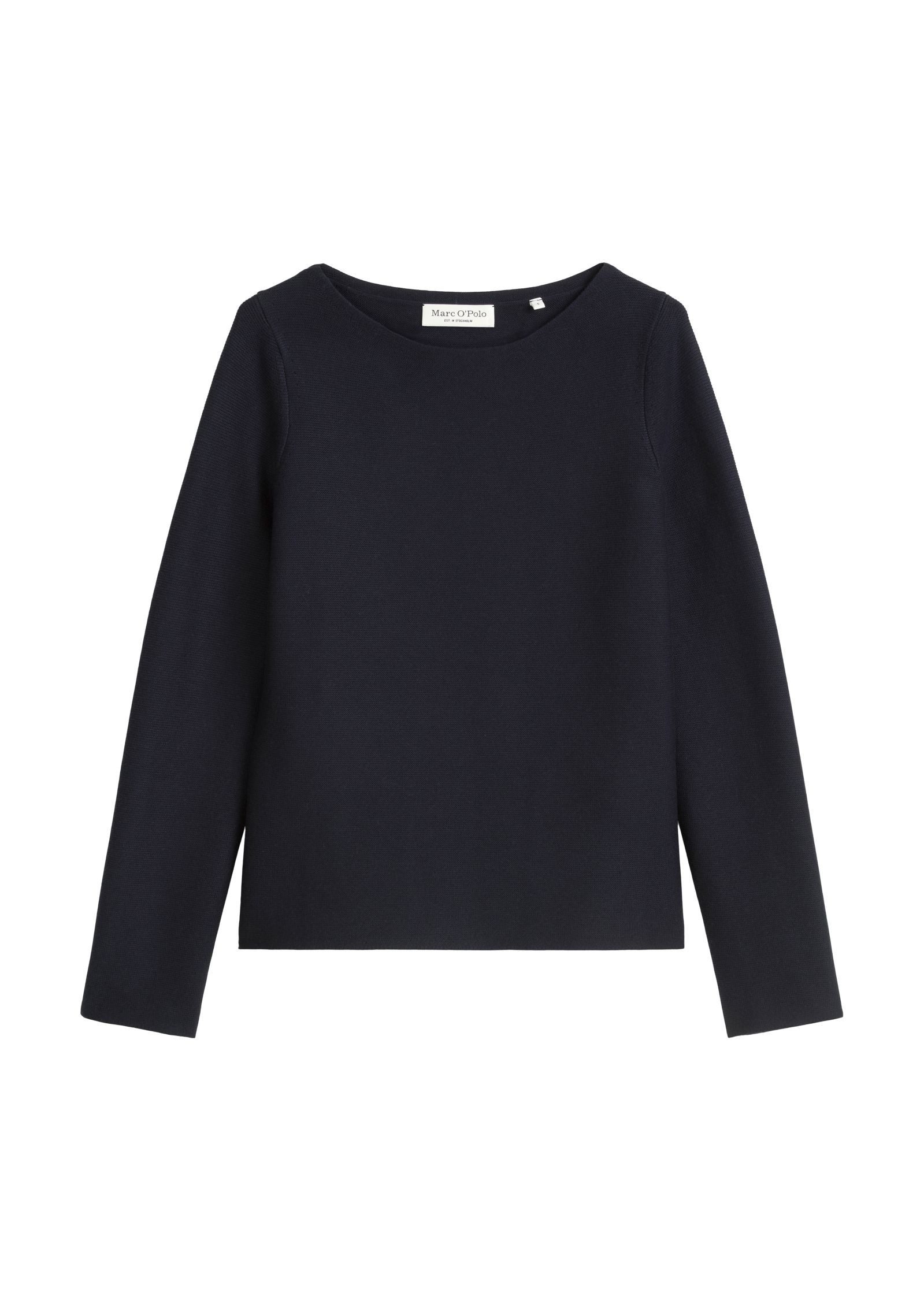 Perfekte Kombination aus Stil und Komfort: der hochwertige Pullover aus reiner Bio-Baumwolle sorgt mit seinem linken Maschenbild für einen modernen Look. Im figurbetonten Slim Fit mit femininem U-Boot-Ausschnitt, langen Ärmeln und geradem Saum. Dank des Self-Start-Designs benötigt er an Ausschnitt, Ärmelenden und Saum keine zusätzliche Verstärkung oder Nähte – für eine makellos cleane Optik, den Casual Look perfektioniert.