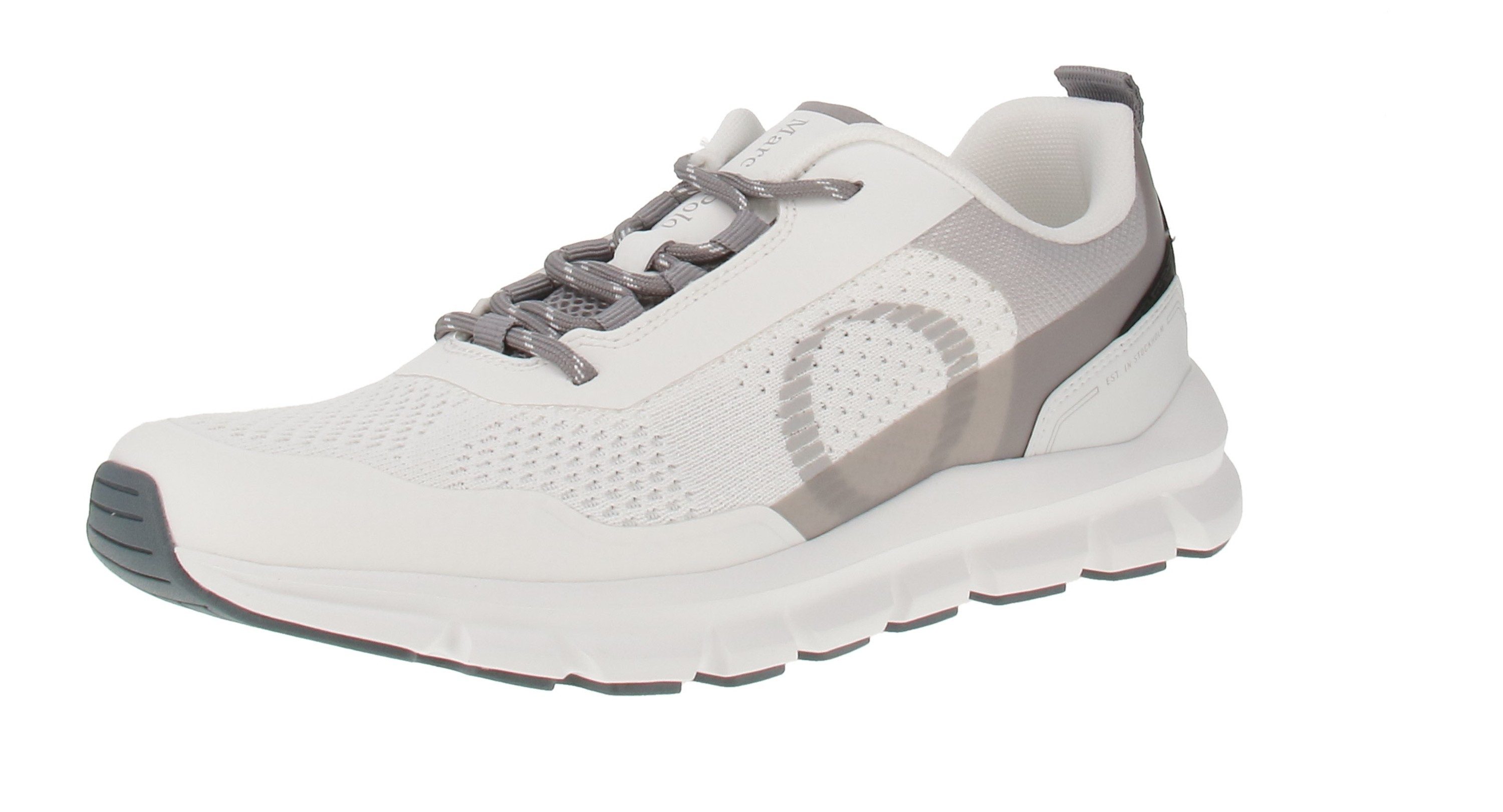 Leicht, bequem und nachhaltig: Diese modernen Sneaker von Marc O'Polo bestehen aus recyceltem Polyester mit einer atmungsaktiven Strickstruktur und strapazierfähigen Verstärkungen für langanhaltenden Tragekomfort. Im Inneneren sorgt ein weiches Mesh-Futter aus recyceltem Material für ein angenehmes Fußklima, während der gepolsterte Fersenbereich zusätzlichen Halt bietet. Die herausnehmbare Innensohle aus Mikrofaser mit Memory Foam passt sich individuell an und sorgt für ein weiches Laufgefühl. Abgerundet wird das Design durch eine zweifarbige, rutschfeste EVA-Sohle, die für Stabilität und Flexibilität sorgt.