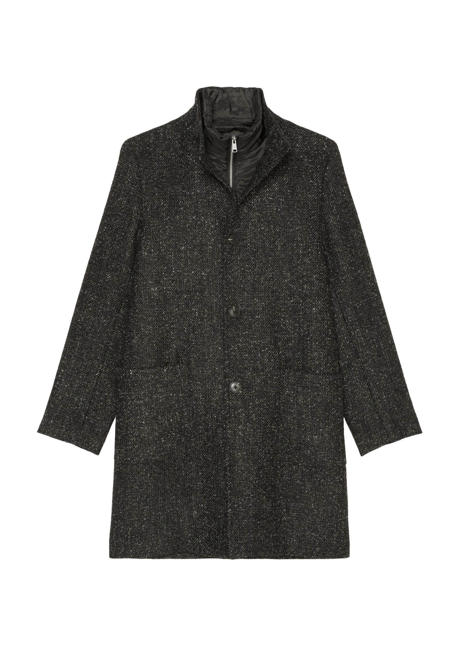 Ein klassischer Wollmantel erhält ein lässiges Update durch einen trendigen, wattierten Windshield-Einsatz, der zusätzlichen Komfort und Schutz bietet. Dieses Modell ist aus hochwertiger Schurwolle gefertigt und bietet eine angenehme Wärme an kühlen Tagen. Der durchgehende Windshield-Einsatz kann eingeknöpft werden und verfügt über einen Stehkragen und Reißverschluss, sodass Du optimal gegen Wind geschützt bist. Kombiniere ihn mit Deinen Lieblingsjeans und Stiefeln für einen entspannten Casual-Look.Das melierte Design des Mantels verleiht ihm eine moderne Note, während die Knöpfe in Hornoptik für einen klassischen Touch sorgen. Der Stehkragen bietet zusätzlichen Schutz und Wärme und lässt sich bei Bedarf hochklappen. Ein Gehschlitz auf der Rückseite sorgt für mehr Bewegungsfreiheit und Komfort. Der Mantel ist durchgehend gefüttert, was für angenehme Wärme sorgt, ohne dabei auf Stil zu verzichten. Dieses Modell ist perfekt für den Alltag und lässt Dich immer gut aussehen.Ein besonderes Highlight ist das kontrastfarbene Logolabel am Ärmelabschluss, das bei Bedarf abgetrennt werden kann. So kannst Du den Mantel ganz nach Deinem Geschmack anpassen und Deinem individuellen Stil Ausdruck verleihen. Das Obermaterial besteht aus 80% Schurwolle und 20% Polyester, was den Mantel besonders langlebig und pflegeleicht macht. Egal ob für einen Spaziergang in der Stadt oder einen Ausflug aufs Land, dieser Mantel ist ein zuverlässiger Begleiter.Zusammengefasst bietet dieser Wollmantel Funktionalität und Stil in einem. Die Kombination aus klassischem Design und modernen Details macht ihn zu einem vielseitigen Begleiter für jede Gelegenheit. Der durchgehende Windshield-Einsatz und das Futter sorgen für optimalen Kälteschutz, während die hochwertige Schurwolle für ein angenehmes Tragegefühl sorgt. Mit diesem Mantel bist Du bestens gerüstet für die kalte Jahreszeit und siehst dabei immer stilvoll aus. Trendiger Windshield-Einsatz mit Stehkragen und Reißverschluss Meliertes Design mit Knöpfen in Hornoptik Durchgehendes Futter für zusätzlichen Komfort Abtrennbares kontrastfarbenes Logolabel am Ärmelabschluss