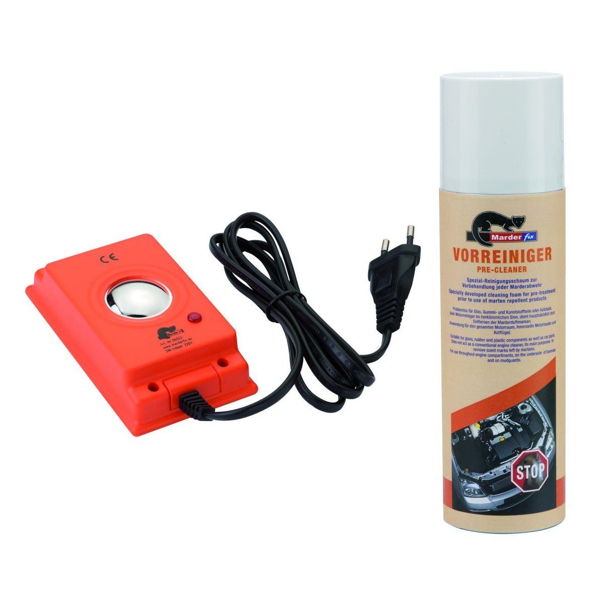 Dieser Vorreiniger sollte vor jeder Marderschutzmaßnahme angewandt werden. Durch den speziellen Reinigungsschaum wird die Duftmarke des Marders entfernt und somit der Verteidigungsinstinkt des Marders nicht mehr gereizt.