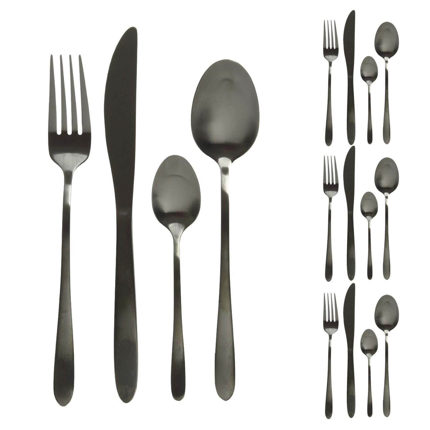 Was ein ausgefallenes Besteck Set! Das 16-teilige Besteck passt perfekt zu Deinem speziellen Dinner, auf der Hochzeit, zum Abendessen oder einfach so. Das schwarz mattierte und zeitlose Design ist vielseitig einsetzbar.