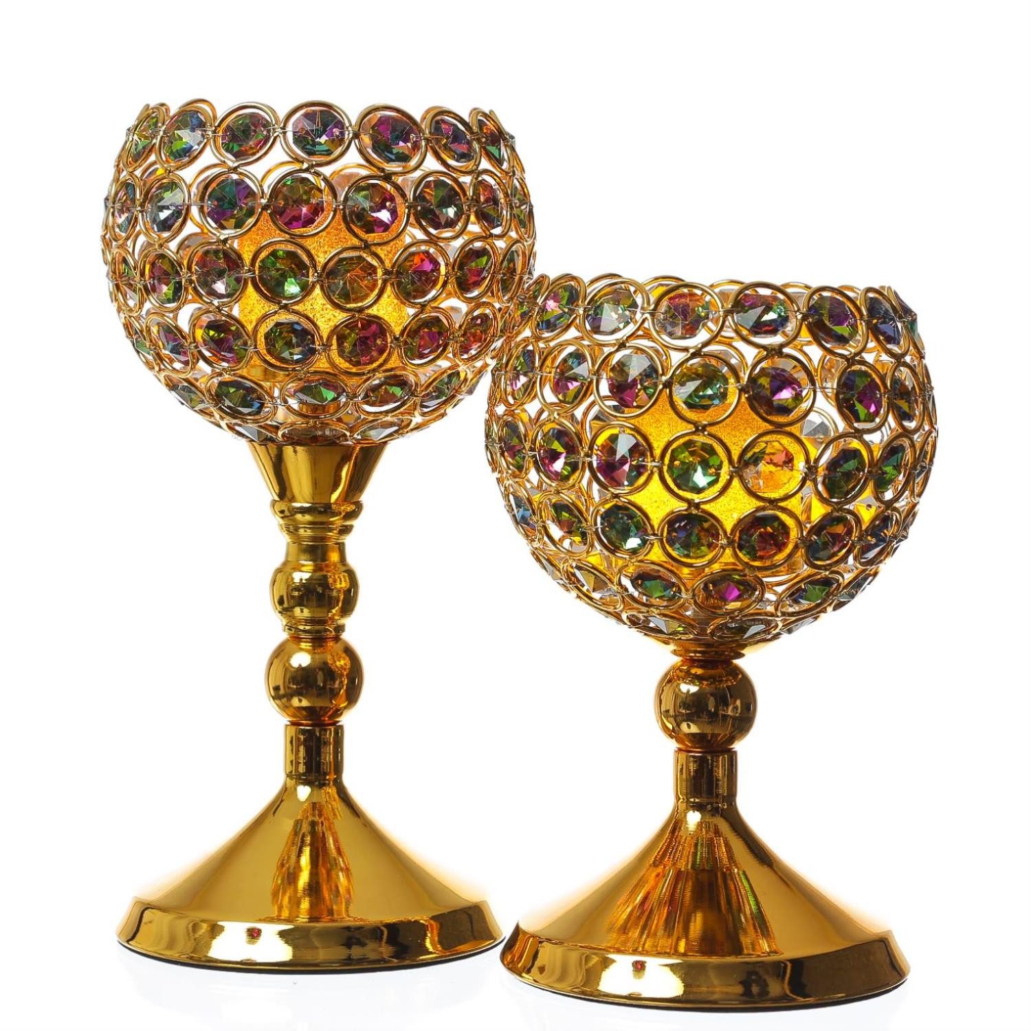 Diese prunkvollen goldfarbenen Dekokelche mit den bunten Glaskristallen sind ein Highlight in Deiner Raumdekoration. Die Kelche eignen sich ganzjährig zum Schmücken von Vitrinen, Kommoden und Regalen.