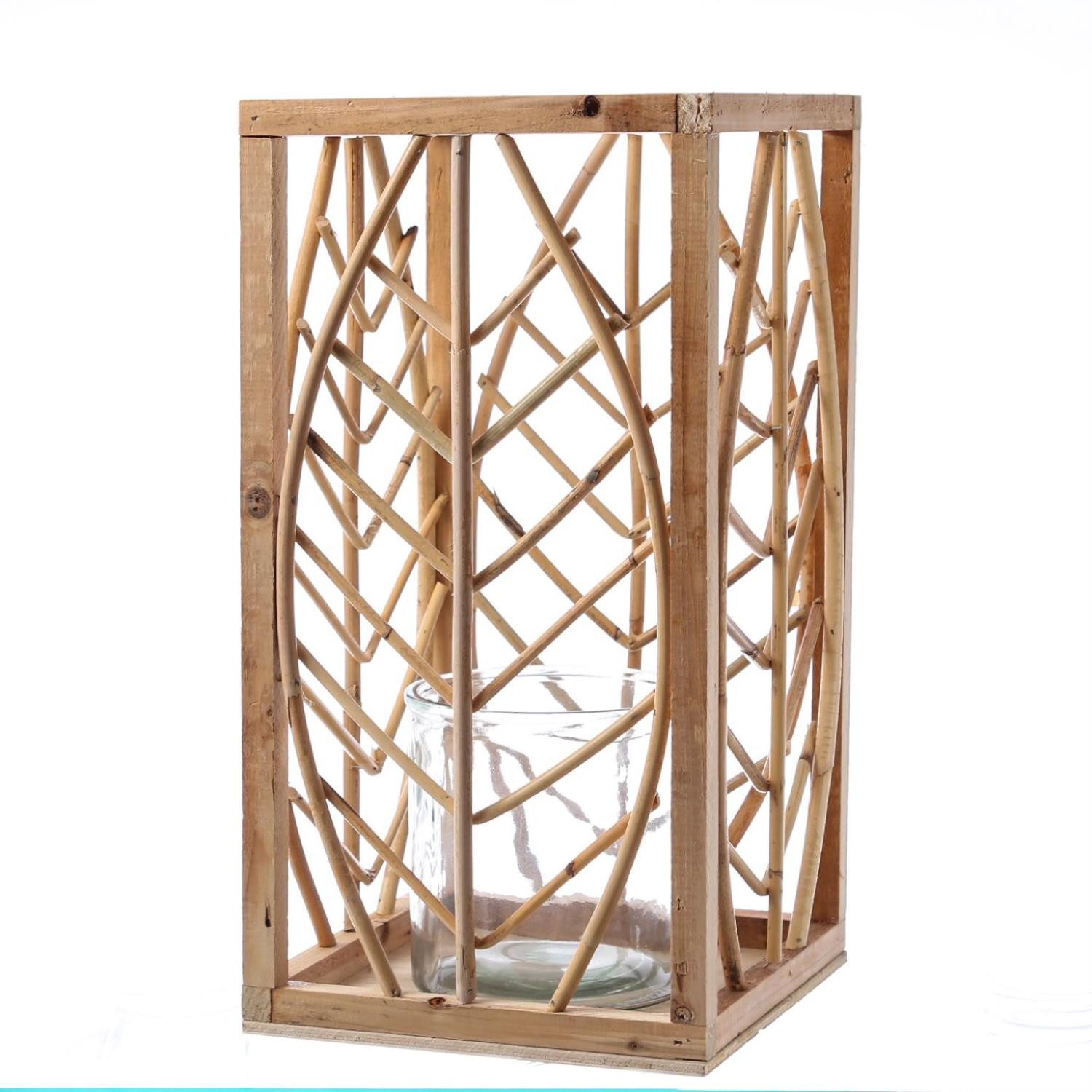 Die wunderschöne naturfabene Laterne aus Rattan mit Glaseinsatz ist die perfekte Dekoration. Du kannst die Laterne mit einer Höhe von 45,5cm überall in Deinem Wohnraum aufstellen und für einen Blickfang sorgen.
