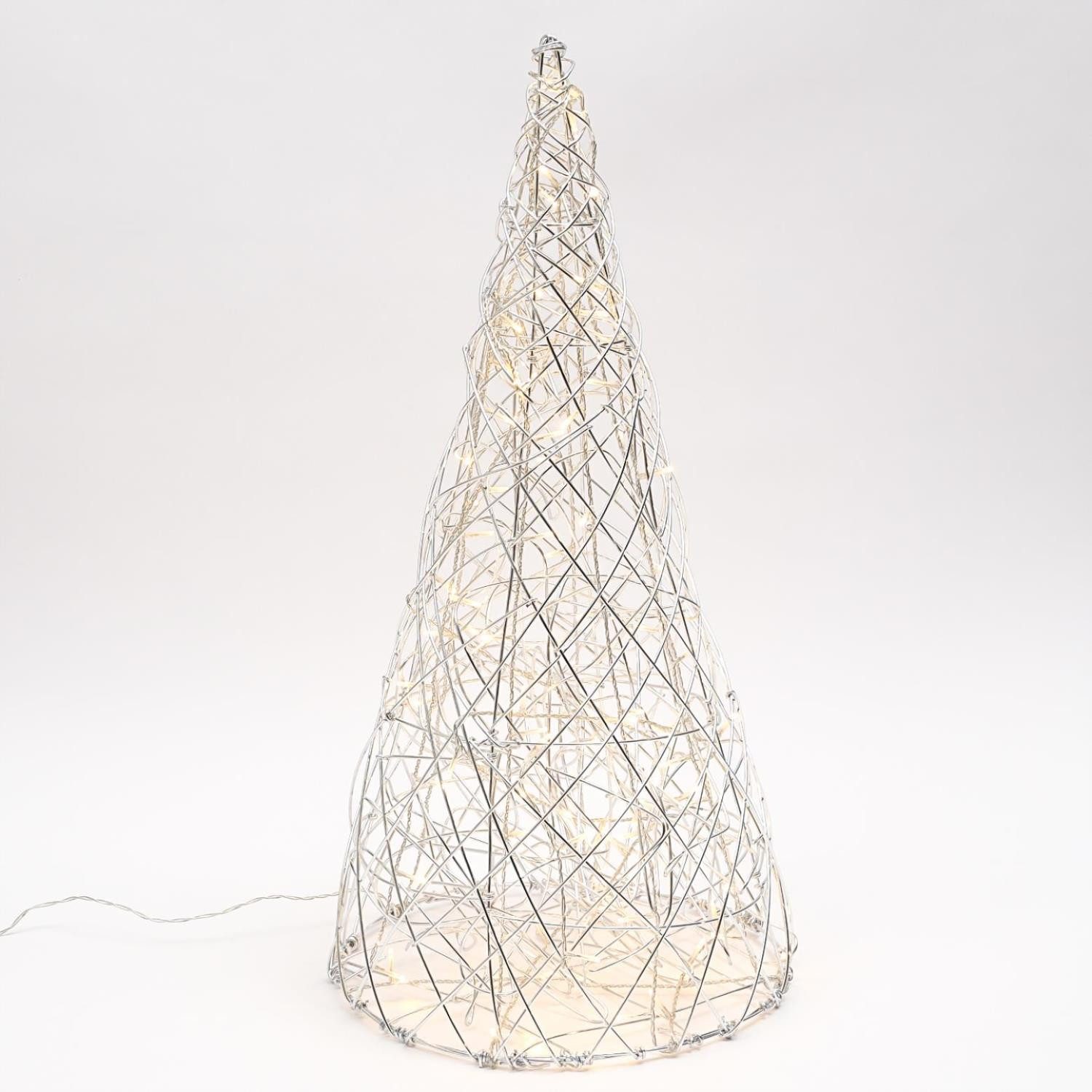 LED 3D Kegel - Gartenleuchte - Drahtleuchte - 100 warmweiße LED - für Außen - silberner Draht
