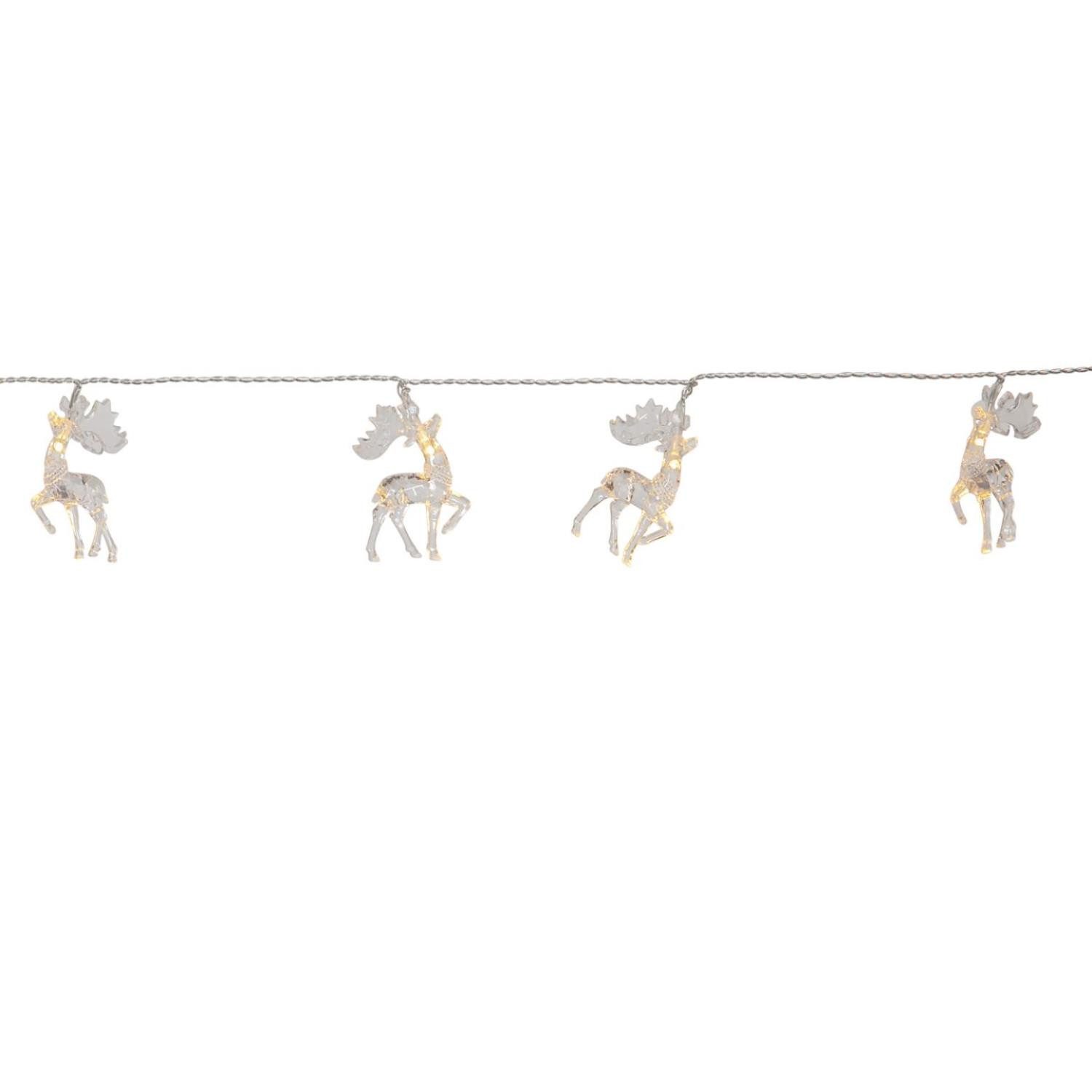 Diese LED Lichterkette mit den 10 warmweißen LED Rentiere ist die perfekte Dekoration von Türkränzen, Gestecken, Tischen, Kommoden oder Fenstern. Das warmweiße Licht strahlt besonders schön durch die transparenten Rentiere.