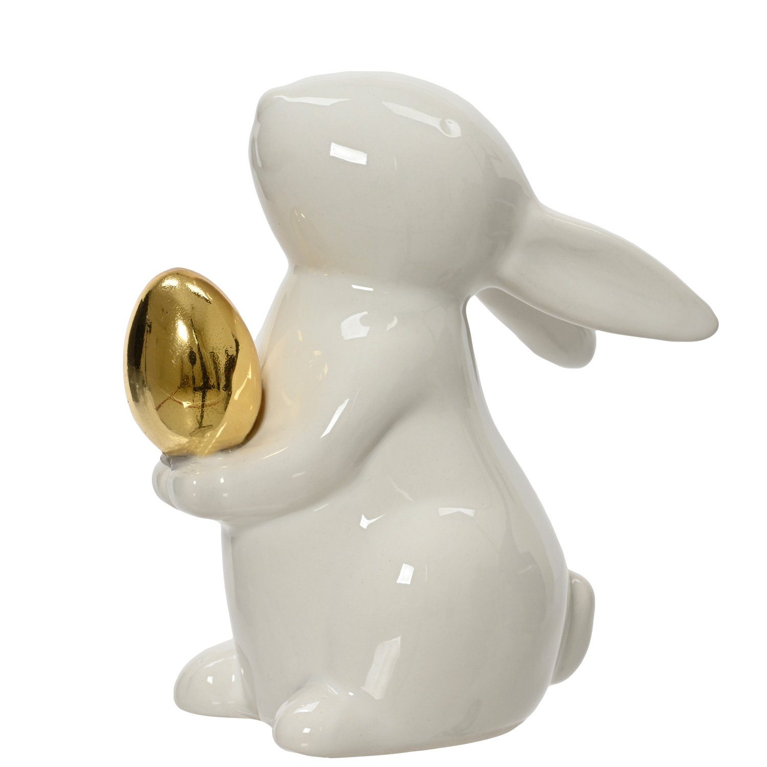 Dieses wunderschöne Häßchen aus glänzenden, weißen Dolomit ist eine attraktive und elegante Osterdeko. Das weiße Häßchen sitzt erwartungsvoll auf seinem Poppes und zeigt Dir sein gerade gefundenes, goldenes Ei. Es ist wirklich süß anzusehen, wie die Osterfigur einen anschaut.