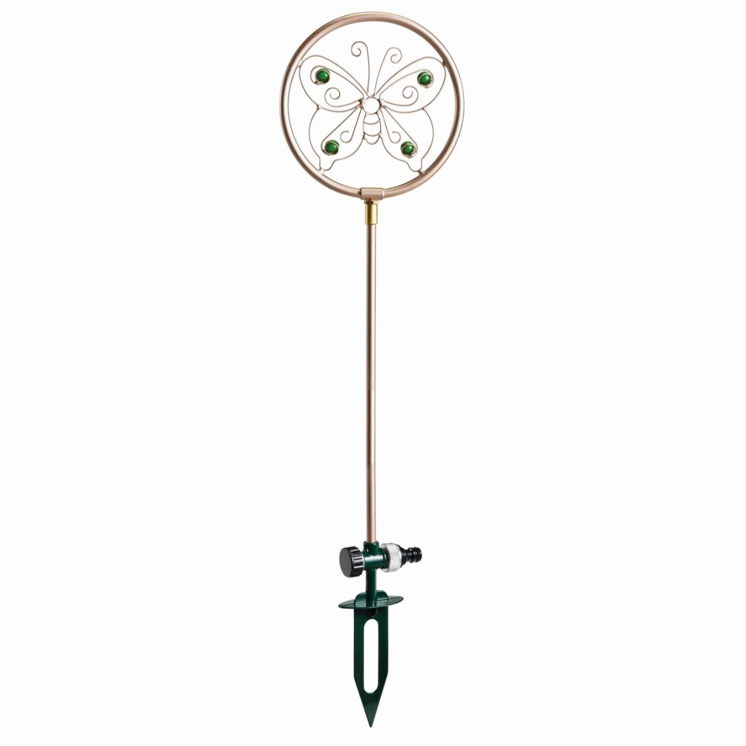 Mit dem Schmetterling und den grünen Steinen ist dieser Gartenstecker ein absolutes Highlight in Deinem Garten. Der dekorative Stecker sieht nicht nur klasse aus, dieser ist auch noch praktisch. Der Gartenstecker mit dem rotierenden Ring ist nämlich gleichzeitig ein Wassersprinkler zum Bewässern Deines Rasen.