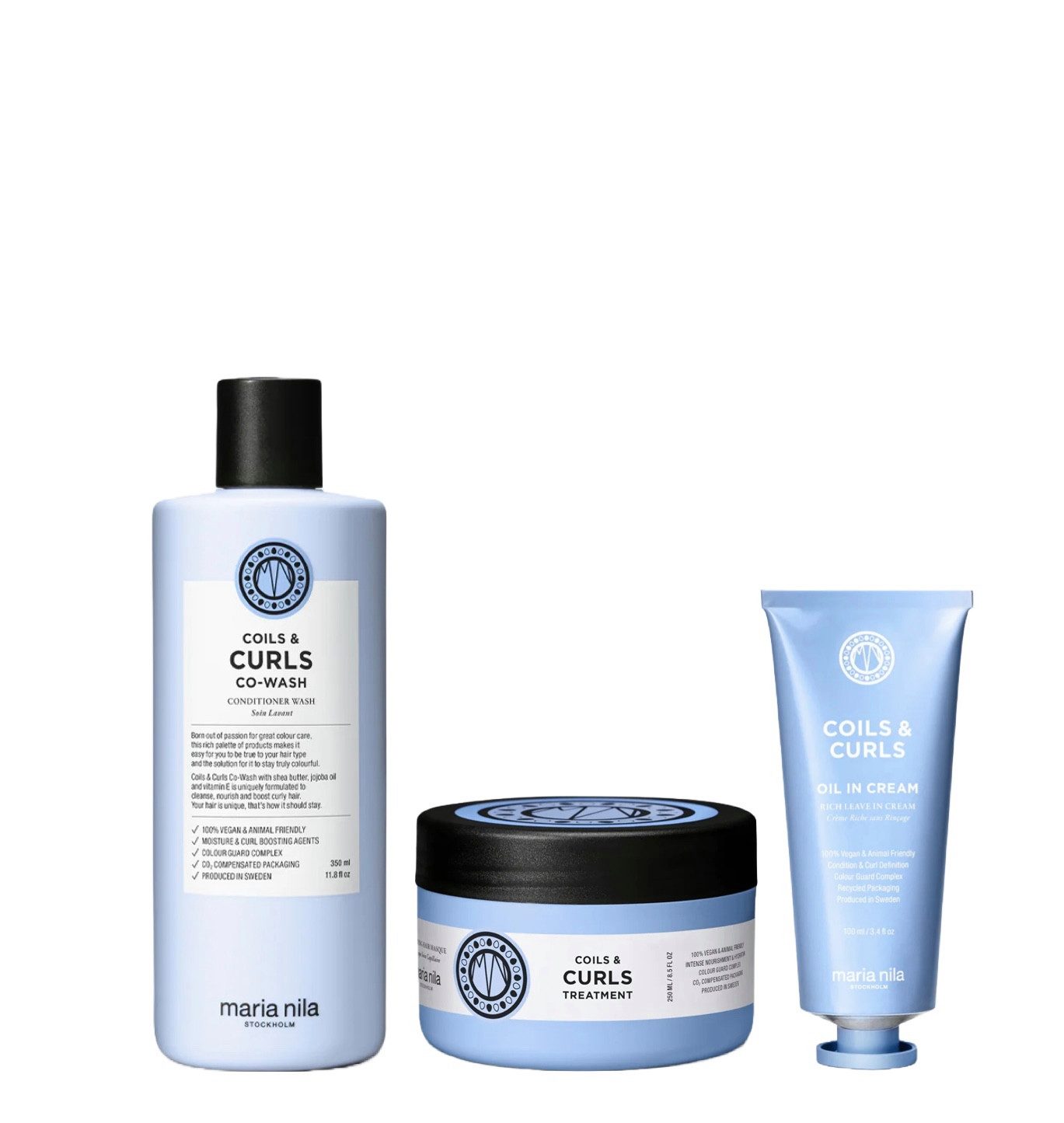 Intensivpflege für definierte Locken Das Maria Nila Coils & Curls Set wurde speziell für lockiges, welliges und krauses Haar entwickelt. Es versorgt das Haar intensiv mit Feuchtigkeit, definiert Locken und reduziert Frizz – für geschmeidige, gesunde und glänzende Locken. Set-Bestandteile & Vorteile: Co-Wash (300 ml) – Sanfte Reinigung ohne Sulfate, entfernt Unreinheiten, während natürliche Öle erhalten bleiben. Spendet Feuchtigkeit und schützt vor Frizz. Treatment (250 ml) – Tiefenwirksame Maske mit pflegenden Inhaltsstoffen, die das Haar regeneriert, stärkt und geschmeidig macht. Ideal für trockenes und strapaziertes Haar. Oil in Cream (100 ml) – Leave-in-Pflege, die Feuchtigkeit spendet, Locken definiert und vor Haarbruch schützt. Leichte Formel, die nicht beschwert. Warum Maria Nila Coils & Curls? 100 % vegan & tierversuchsfrei Ohne Sulfate & Parabene Schützt die Haarfarbe Spendet Feuchtigkeit & stärkt die Haarstruktur