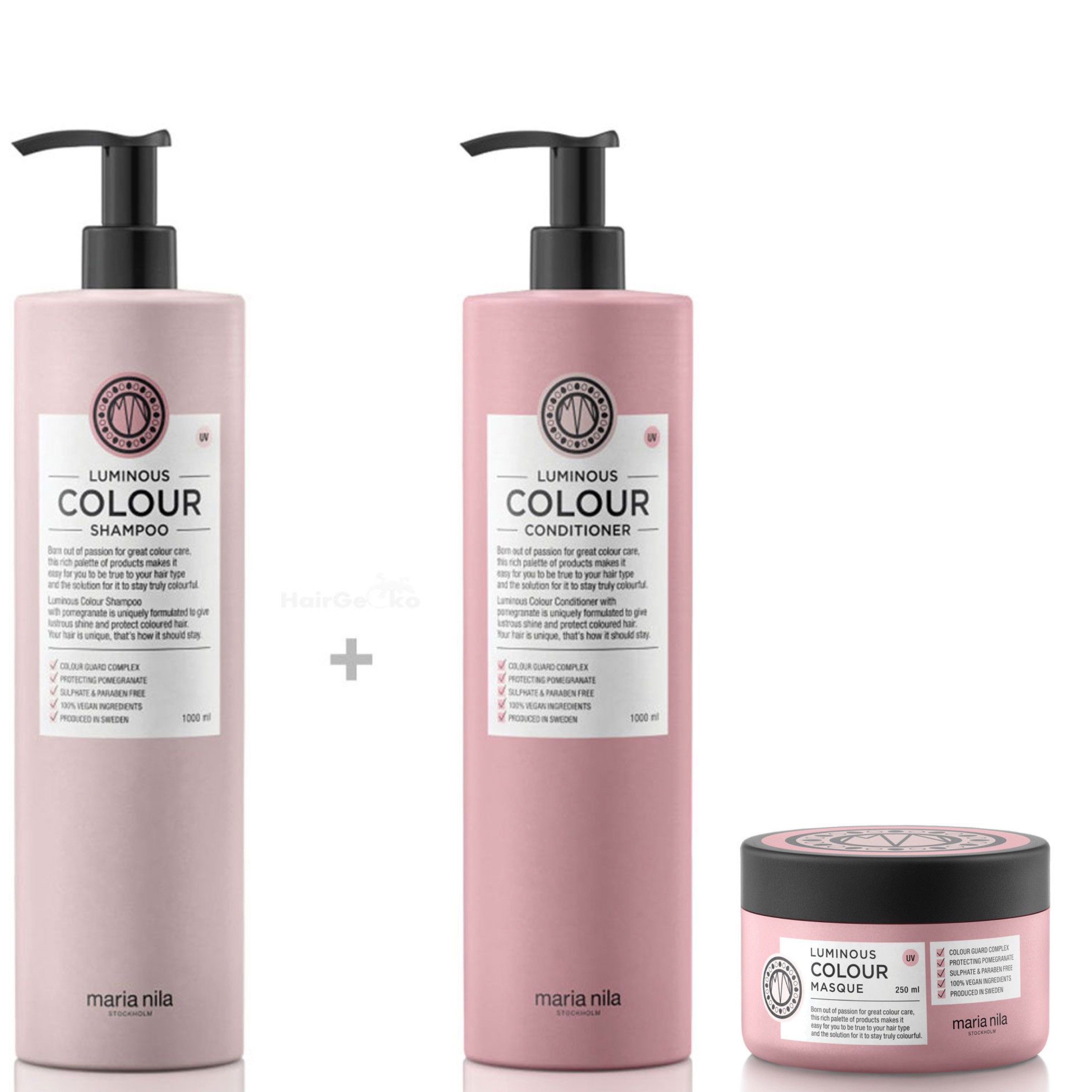 Produktinformationen Maria Nila Luminous Colour Set - Shampoo 350 ml + Conditioner 300 ml + Masque / Maske 250 ml