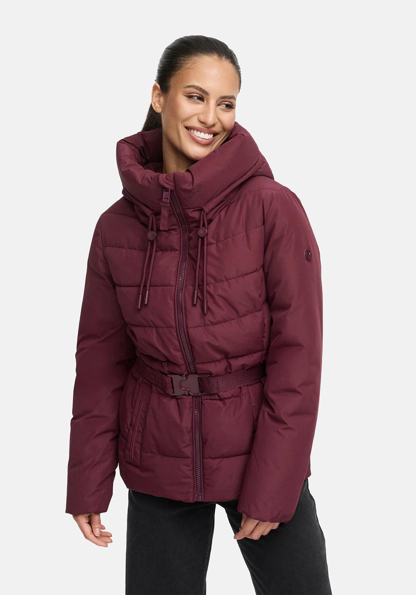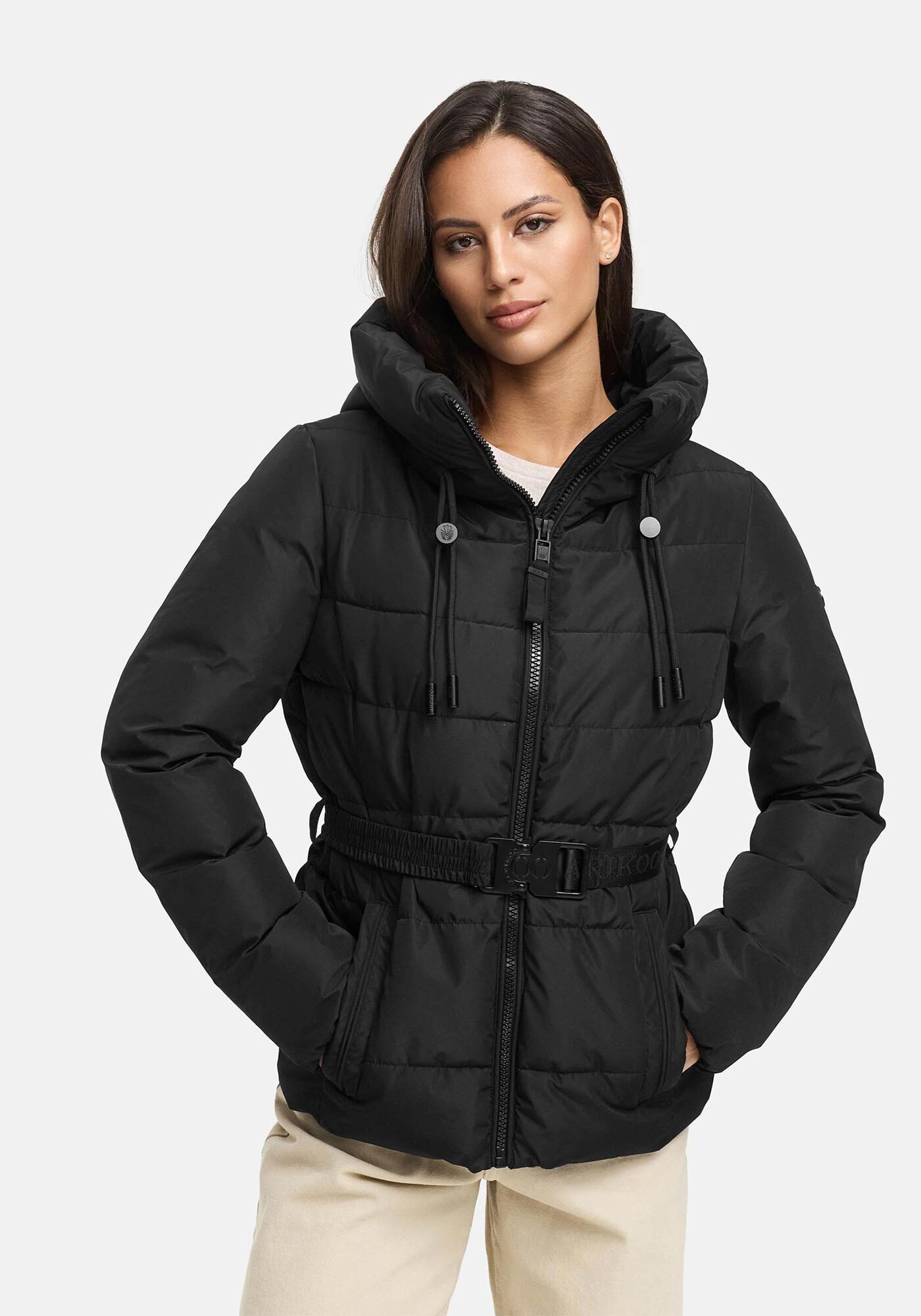 Diese elegante Damen-Winterjacke von Marikoo vereint stilvolle Steppoptik mit einer femininen, taillierten Silhouette - perfekt für kalte Tage in der Stadt, im Alltag oder auf Reisen. Die fest integrierte, gesteppte Kapuze mit Kordelzug schützt zuverlässig vor Wind und Kälte, während der elastische Taillengürtel mit robuster Klickschnalle die Passform individuell anpasst und die Figur optimal betont.