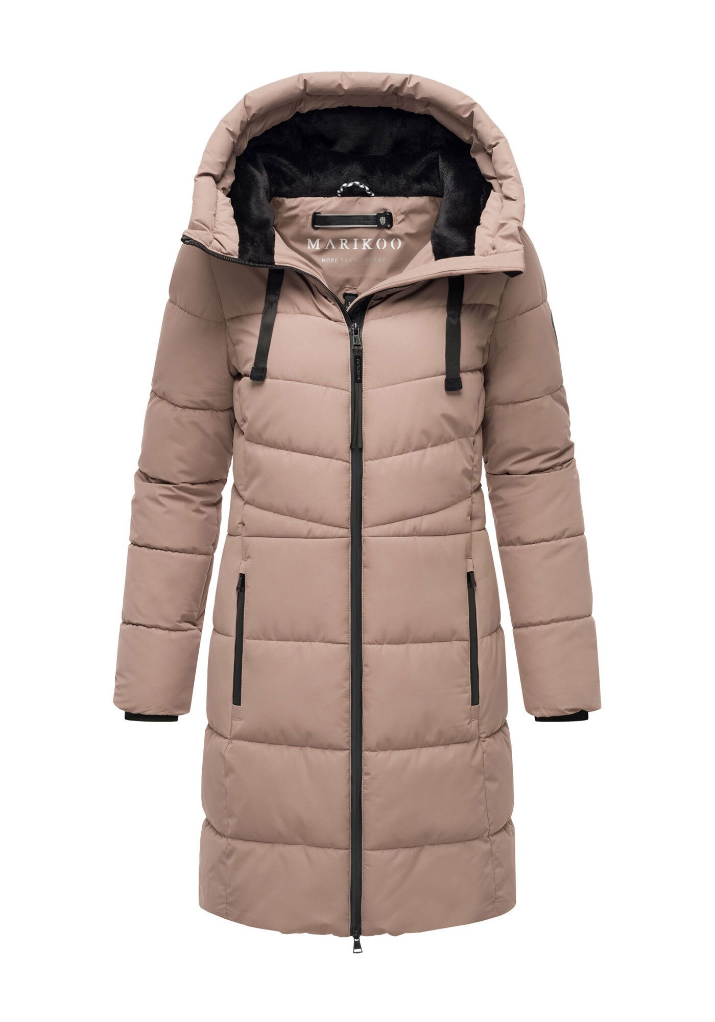 Angeboten wird eine warme etwas länger geschnittene Damen Winter Steppjacke, der Trendmarke "Marikoo". Diese Steppjacke bietet einen rundum Wohlfühlfaktor in den kühlen Tagen. Durch das Wind- & Wasserabweisende Obermaterial, ist es die perfekte Jacke für die kalte Jahreszeit. Außerdem ist diese Steppjacke im inneren im oberen Bereich mit warmem Teddyfell ausgestattet, was zusätzlich zu der guten Fütterung Schutz vor Wind&Kälte bietet.