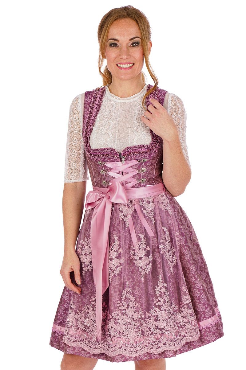 Material Dirndl/Futter: 100% Polyester Material Schürze: 100% Polyester Farbe: Beere Größen: 30 - 46 Handwäsche