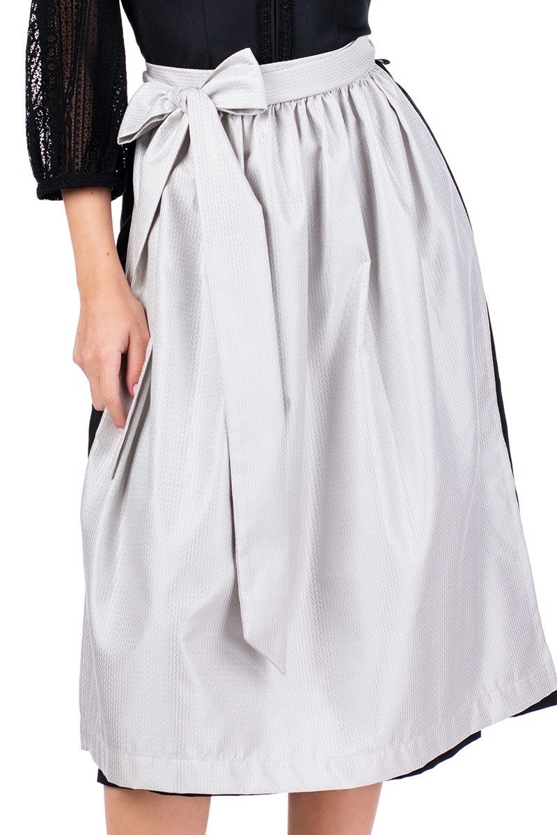 Die perfekte Ergänzung für Ihr Dirndl: Diese kniebedeckende Jacquard-Schürze besticht durch ein edel glänzendes Blätterranken-Webmuster auf mattem Untergrund. Der leicht geraffte Bund sorgt für einen schönen Faltenwurf, während das Schürzenbindeband eine ansprechende Schleife ermöglicht. Mit geradem Saum ist sie vielseitig kombinierbar und ideal für Midi-Dirndl mit einer Rocklänge von ca. 75 cm.