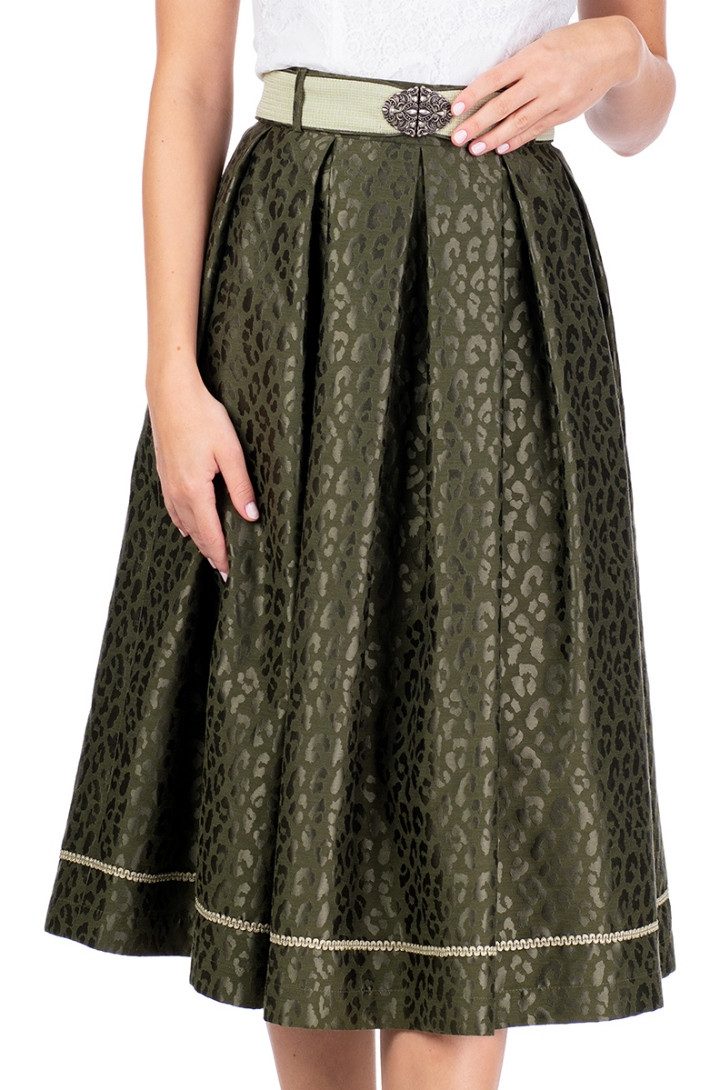 Wadenlanger Trachtenrock in stilvollem Olive mit feminin ausgestelltem Schnitt