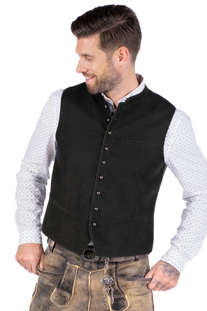 Klassisch und kernig zugleich: Diese Herrenweste aus hochwertigem Feincord aus reiner Baumwolle überzeugt mit griffiger Struktur, verstärktem Stehkragen und edel paspelierter Knopfleiste. Metallene Ösen-Kugelnöpfe setzen stilvolle Akzente, während Paspeltaschen an Brust und Seiten praktische Eleganz bieten. Der Rücken aus Kontraststoff mit feinem Fischgratmuster und verstellbarem Riegel sorgt für perfekten Sitz. Ein leicht glänzendes Futter in Taft-Optik und eine Innentasche mit Knopf machen die Weste komplett – ideal zur Lederhose oder als stilvolle Ergänzung zum Trachtenlook. Bitte Größenzuschlag ab Размер 58 beachten.