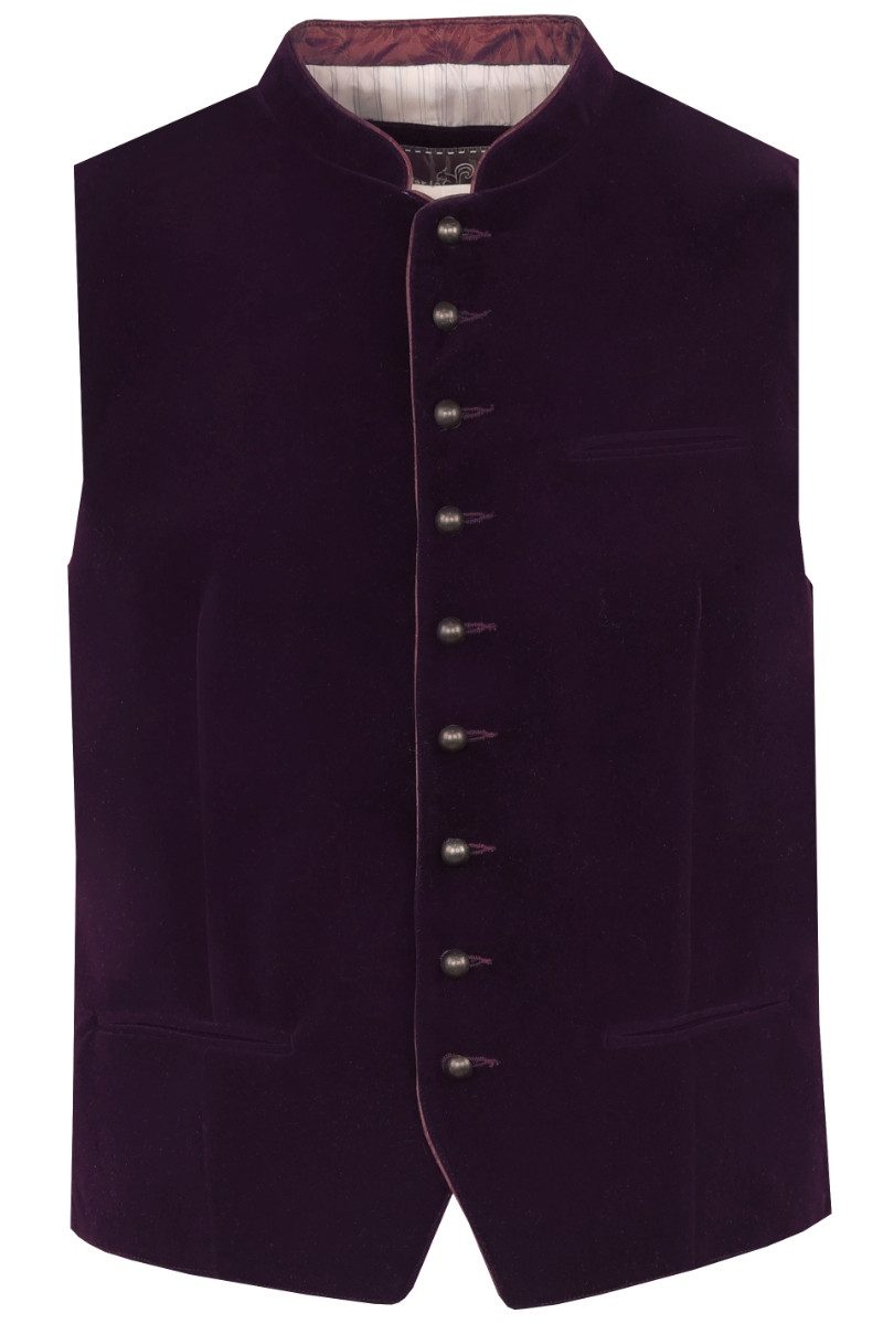 Exklusive Herrenweste aus festlichem Samt in edler Farbe Pflaume mit altsilbernen Kugelknöpfen