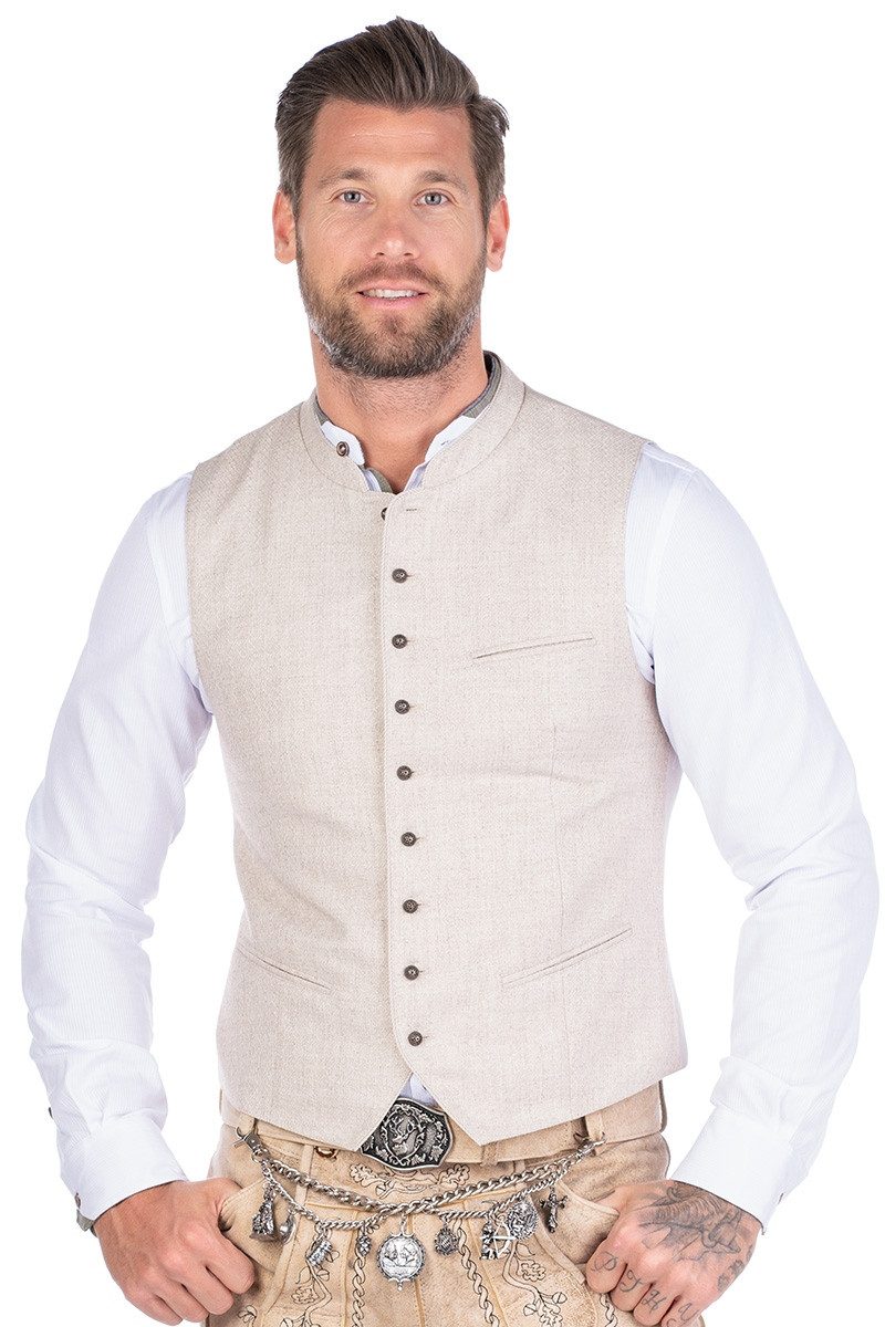 Herren Trachtenweste in Sand mit markanter Jacquard-Vorderseite