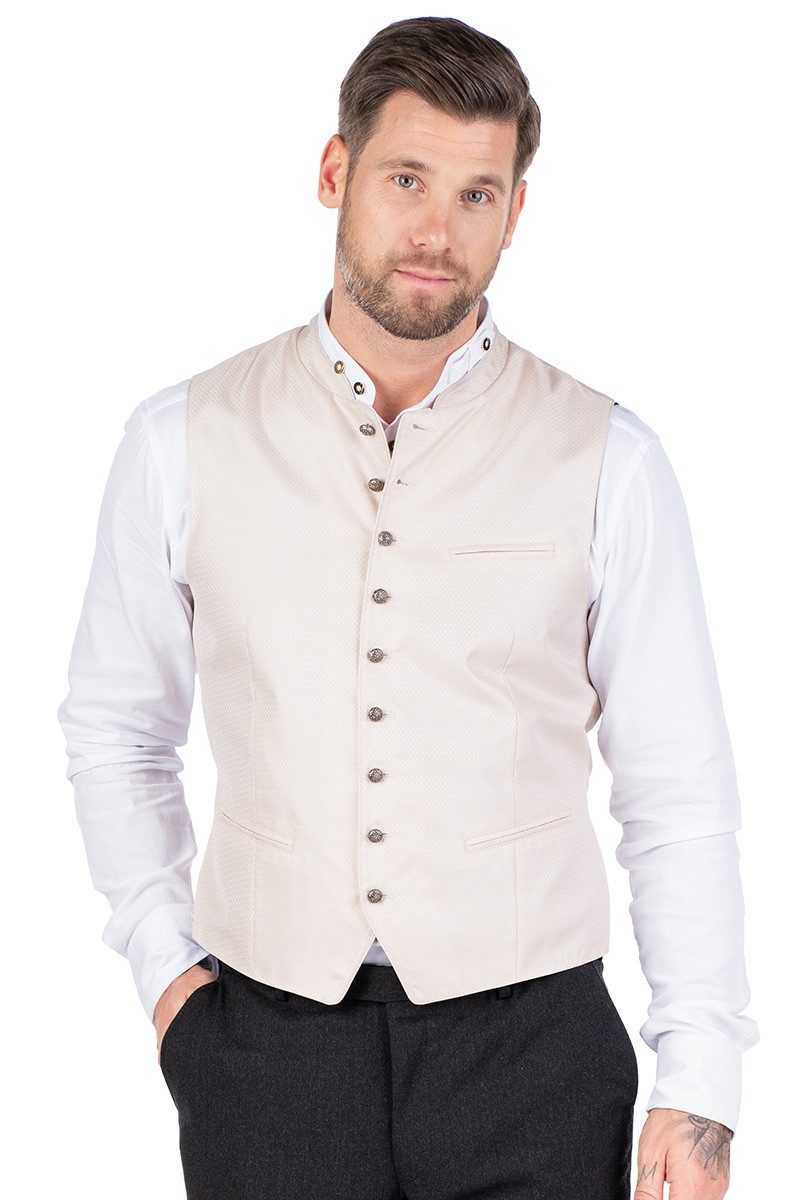 Exklusive Herren-Trachtenweste (Gr. 42-64) aus edel glänzendem Jacquard in hellem Taupe mit feinem Gitter-Webmuster