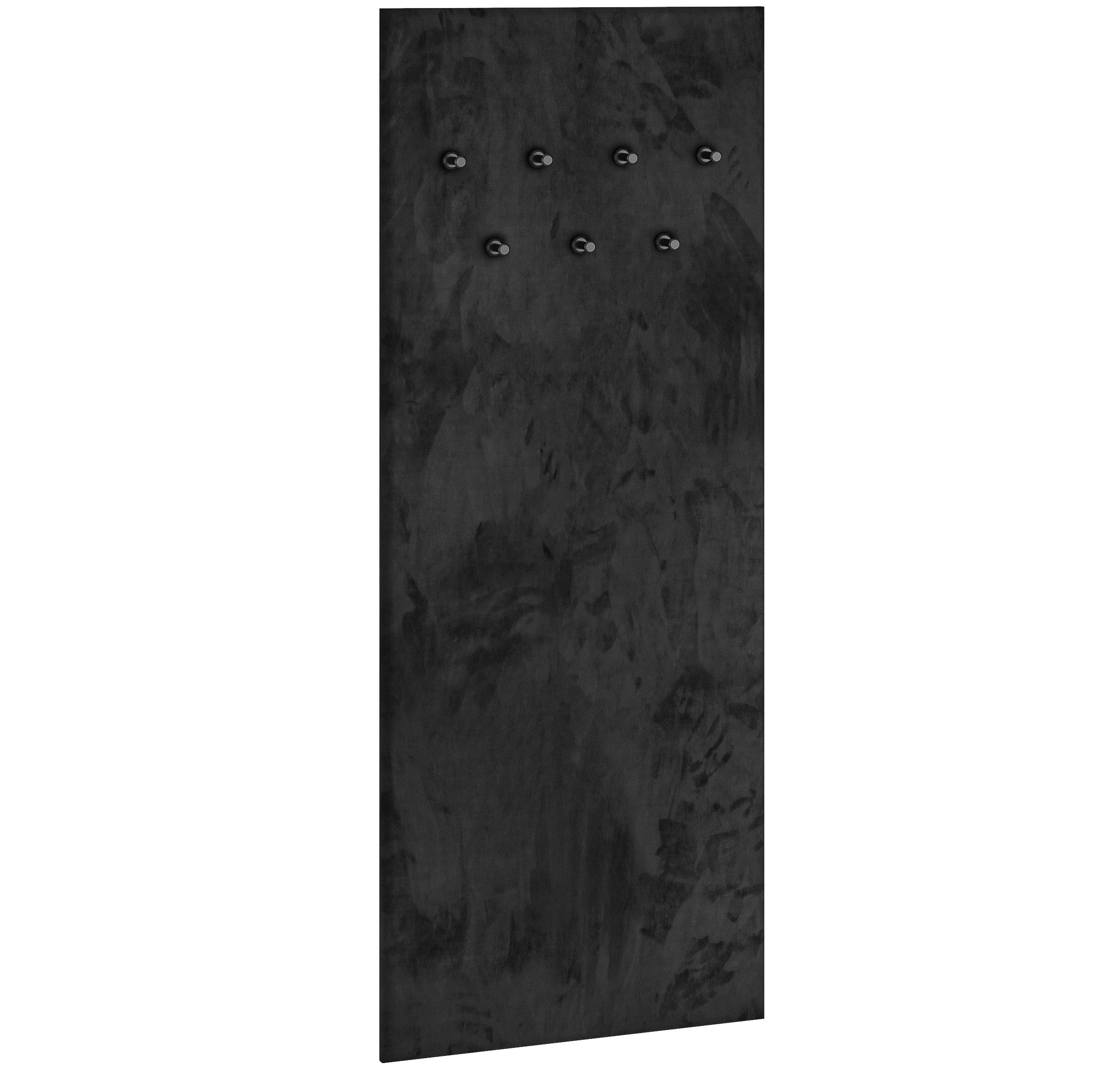 VASCO 08 - Ein Garderobenpaneel zum Aufhängen an die Wand mit 7 Kleiderhaken, Veloursgepolstert in schwarz.