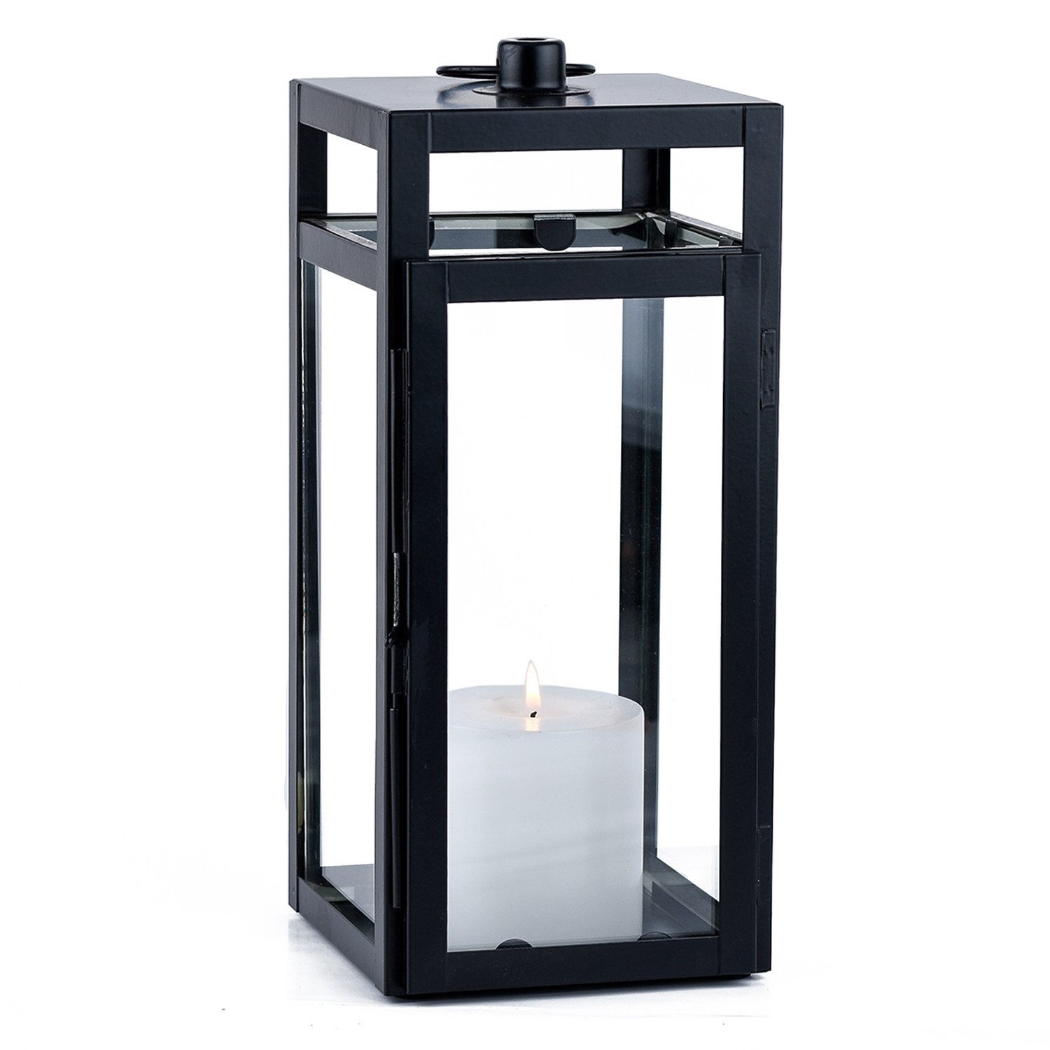 Skandinavisches Design Balkon Windlicht Gartenlaterne Edvin Klein Die moderne Gartenlaterne aus Metall und Glas ist ein perfektes Highlight für Ihren Wohnraum, Garten oder Ihre Terrasse. Der hochwertige Materialmix aus robustem Metall und Glas verleiht der Laterne eine edle Optik und eine lange Lebensdauer. Das moderne Design mit klaren Linien und zeitloser Eleganz passt perfekt zu jedem modernen Wohnstil und schafft eine gemütliche Atmosphäre in Ihrem Garten, auf der Terrasse oder im Wohnzimmer. Dank der unkomplizierten Handhabung und der leichten Reinigung ist die Laterne ein praktischer Helfer bei jeder Gelegenheit. Die Gartenlaterne ist sowohl für den Innen-als auch für den Außenbereich geeignet und sorgt für eine stimmungsvolle Beleuchtung bei jedem Anlass. Egal ob als dekoratives Element auf der Terrasse, als praktische Gartenleuchte oder als stimmungsvolle Leseleuchte im Wohnzimmer - die moderne Gartenlaterne aus Metall und Glas ist ein unverzichtbares Accessoire für jeden modernen Wohnraum. • Größe: 30cm hoch 12,5cm tief und 12,5cm breit | Material: Metall & klares Glas. • Farbe: Schwarz | Diese Windlichter haben ein Türchen um eine Kerze oder Teelicht einzusetzen.