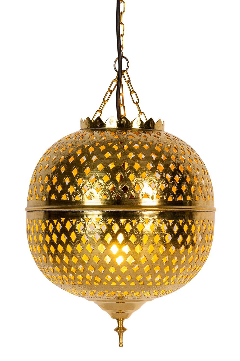 Die Orient Messing Lampe Safiye in grozgigem 18?cm Durchmesser ist ein elegantes Highlight fr nachhaltige Wohnkonzepte. Hergestellt aus hochwertigem, silberfarbenem Messing berzeugt sie durch ihre langlebige Materialqualitt und kunstvoll-perforierte Struktur. Dank feinporiger Handarbeit entsteht bei Licht ein wunderschnes Schattenspiel ein echter Blickfang im Wohnzimmer, Essbereich oder Schlafzimmer.