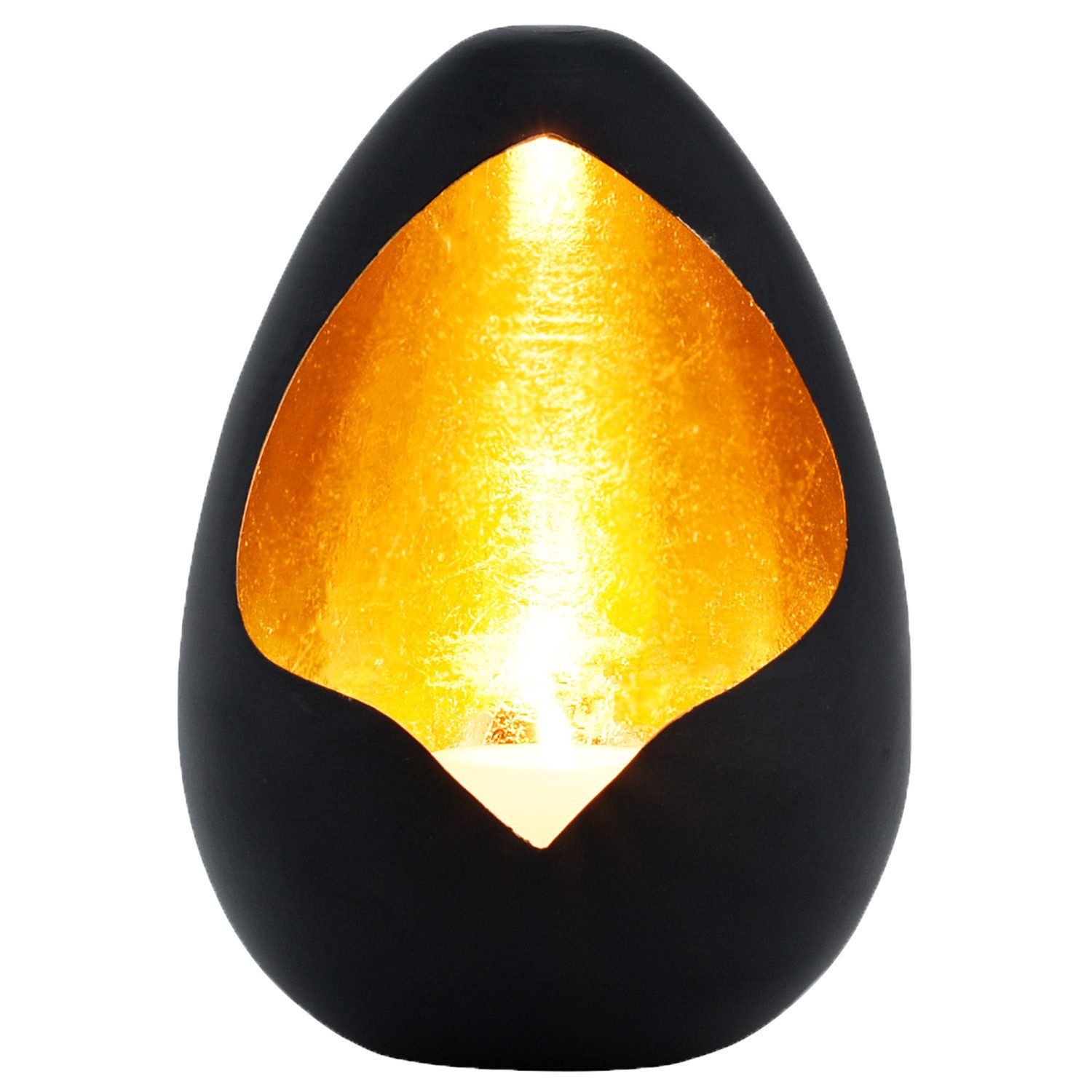 Teelichthalter Stily schwarz Entdecken Sie mit unserem Teelichthalter aus Metall die perfekte Kombination aus Eleganz und Vielseitigkeit. Die Windlichter in zeitlosem Gold innen verleihen Ihrer Tischdeko, sei es bei Hochzeiten oder romantischen Abenden, einen Hauch von Aesthetk-Chic. Diese Kerzenhalter eignen sich hervorragend für kleine Stumpen Kerzen und Teelichter und setzen dabei auf hochwertiges Material für sicheren Stand und einzigartige Optik. Diese Windlichter mit Boden bringen skandinavisches Flair in Ihr Wohnzimmer und sorgen für eine gemütliche Atmosphäre. Dieses Set ist nicht nur eine Dekoration, sondern auch eine kreative Geschenkidee. Verwenden Sie die Kerzenhalter als Gastgeschenke oder zum Gießen eigener Kerzendosen. Tauchen Sie mit den modern gestalteten Metallwindlichtern in den Charme des Landhausstils ein und schaffen Sie eine einladende Atmosphäre. Ob als Kerzenbehälter, Kerzenständer oder Votivkerzenhalter – dieses Set bietet eine Vielzahl von Nutzungsmöglichkeiten. Die Teelichthalter sind nicht nur dekorativ, sondern auch funktional und können als stilvolle Dekoobjekte auf der Fensterbank verwendet werden. Mit unserem Teelichthalter aus Metall setzen Sie Akzente in Ihrem Zuhause und schaffen eine stimmungsvolle Tischdekoration. Gönnen Sie sich diesen Hauch von Luxus und verleihen Sie Ihren Abenden das gewisse Etwas – ob beim Dating oder einfach beim Entspannen im Wohnzimmer. Warmer Lichtschein: Die goldene Innenseite dieses orientalischen Windlichtes reflektiert warmes Licht, das eine entspannende Atmosphäre schafft. Verwandle deine Zimmer oder Wohnzimmer in eine gemütliche Oase der Ruhe - Größe: 20 cm hoch & 14 cm breit