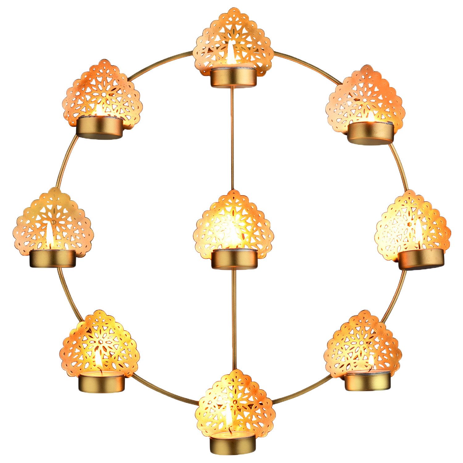 Wandkerzenhalter Bohos -3- Entdecken Sie mit unserem Wandteelichthalter aus goldenem Metall die perfekte Verschmelzung von Eleganz und Raffinesse. Dieses kunstvolle Stück vereint zeitloses Design mit vielseitiger Funktionalität. Die Form verleiht jedem Raum eine kühne Note, während das goldene Metall einen Hauch von Luxus und Wärme hinzufügt. Die fein gearbeiteten Teelichthalter sind nicht nur ein Blickfang an Ihrer Wand, sondern schaffen auch eine einladende Atmosphäre. Nutzen Sie sie mit Teelichtern für romantische Abende oder als stilvolle Dekoration bei besonderen Anlässen wie Hochzeiten oder Dinnerpartys. Dieses Wanddeko ist nicht nur eine Dekoration, sondern auch eine innovative Geschenkidee. Verwenden Sie die Teelichthalter als Gastgeschenke, um Ihren Gästen eine bleibende Erinnerung zu schenken. Mit ihrem zeitlosen Design passen diese Wandteelichthalter perfekt zu verschiedenen Einrichtungsstilen, von modern bis klassisch. Bringen Sie mit diesem eleganten Accessoire einen Hauch von Luxus und Stil in Ihr Zuhause und genießen Sie die warme Atmosphäre, die sie schaffen. Размер : 40x40x5cm passend für Teelichter bis 39mm Durchmesser