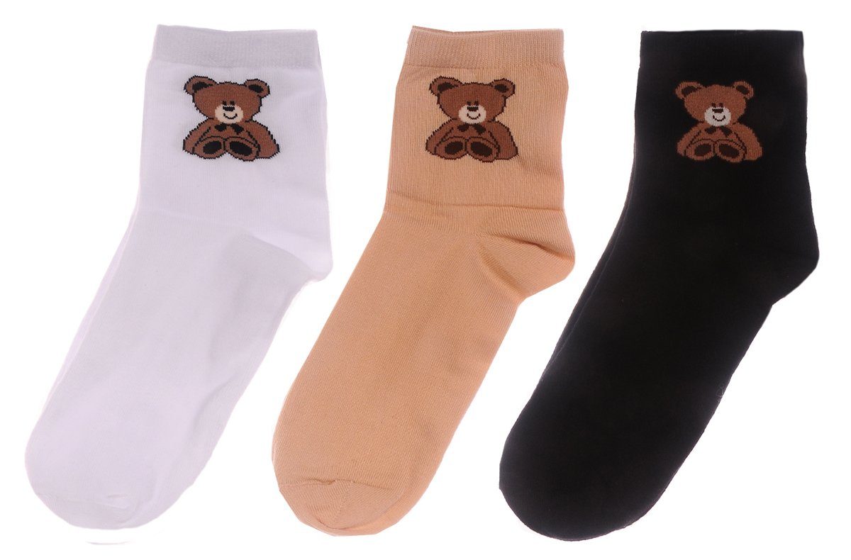 Unser 3er Pack Socken in Weiß, Schwarz und Beige mit niedlichem Bärchen Motiv ist die perfekte Wahl für die ganze Familie. Diese Socken sind neutral und unisex gestaltet, ideal für Damen, Herren und Kinder gleichermaßen. Jede Farbe bietet einen hohen Baumwoll-Anteil, der für höchsten Komfort sorgt. Die weichen Materialien sind atmungsaktiv und angenehm auf der Haut, während die elastischen Bündchen einen sicheren Sitz garantieren, ohne einzuschnüren. Das niedliche Bärchen Motiv verleiht diesen Socken eine verspielte und gemütliche Note, perfekt für den täglichen Gebrauch oder besondere Anlässe. Dank der Vielseitigkeit dieser Farben lassen sich diese Socken einfach mit jedem Outfit kombinieren. Ob für den Alltag, zu Hause oder unterwegs – dieses 3er Pack bietet Komfort und Stil für die ganze Familie. Bestellen Sie jetzt und verleihen Sie Ihren Füßen die perfekte Mischung aus Komfort und Spaß mit unserem 3er Pack Socken in Weiß, Schwarz und Beige!